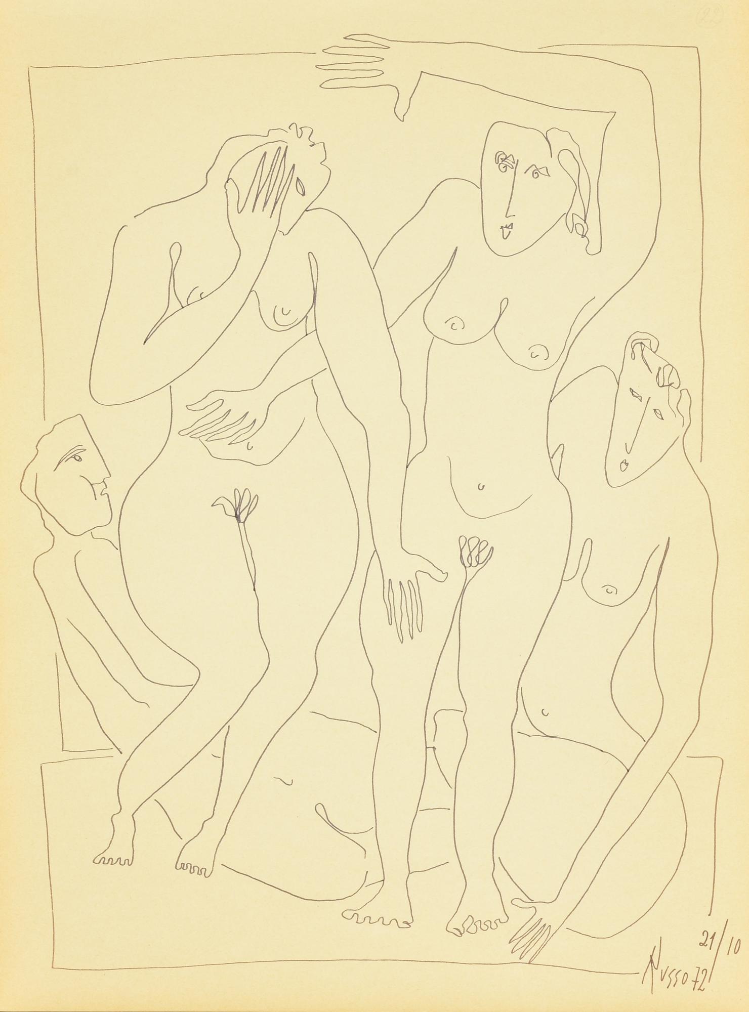 Russo QUATTRO FIGURE pennarello su carta, cm 40x30 firma e data eseguito nel...