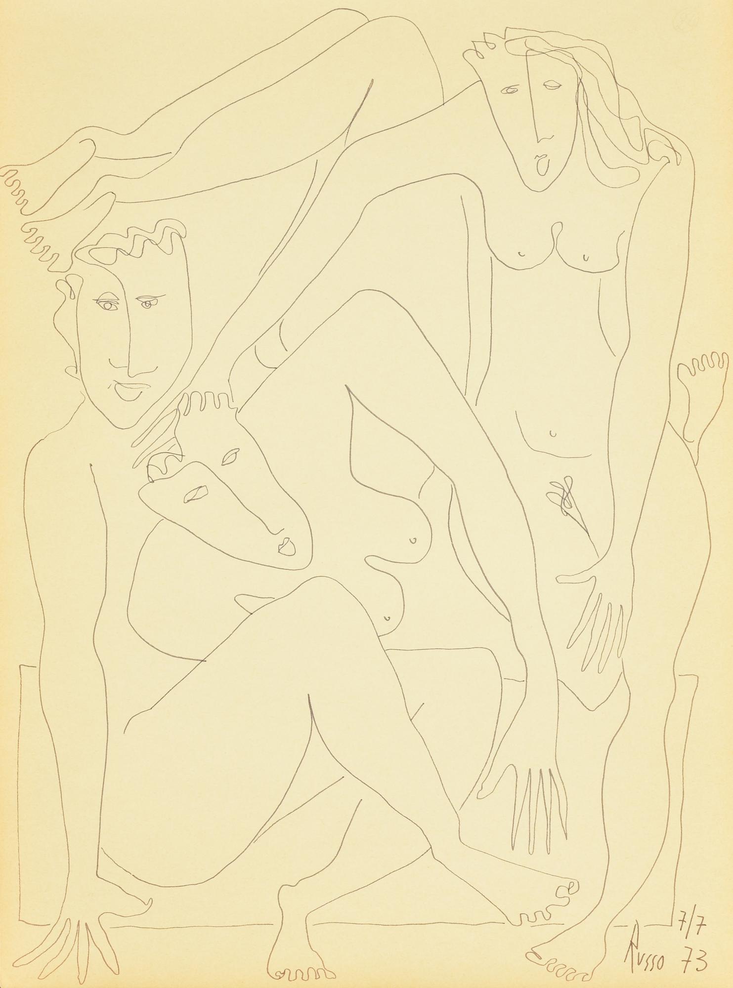 Lot 70 | Russo TRE FIGURE pennarello su carta, cm 40x30 firma e data eseguito nel 1973