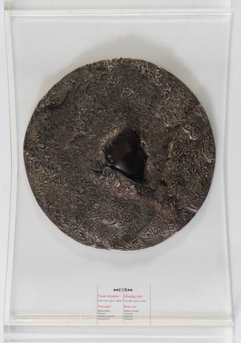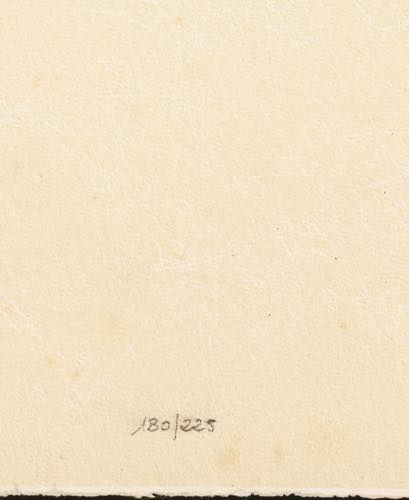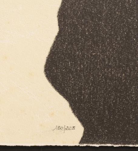 - due tavole lito-serigrafiche con interventi materici in nero e rosso, ciascuna recante firma e numerazione (Esemplari 180/225 ) a matita al fronte.