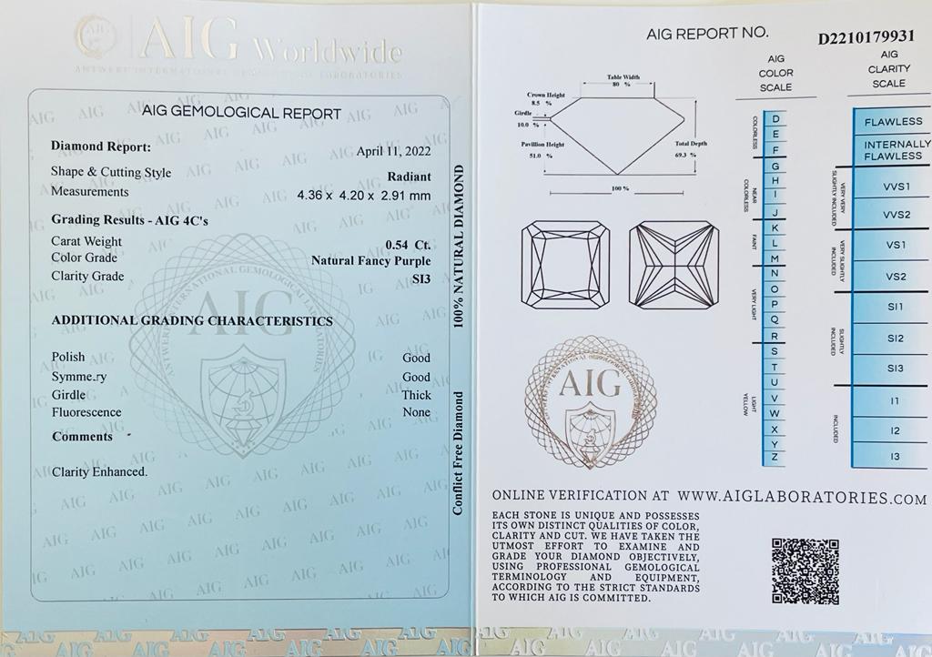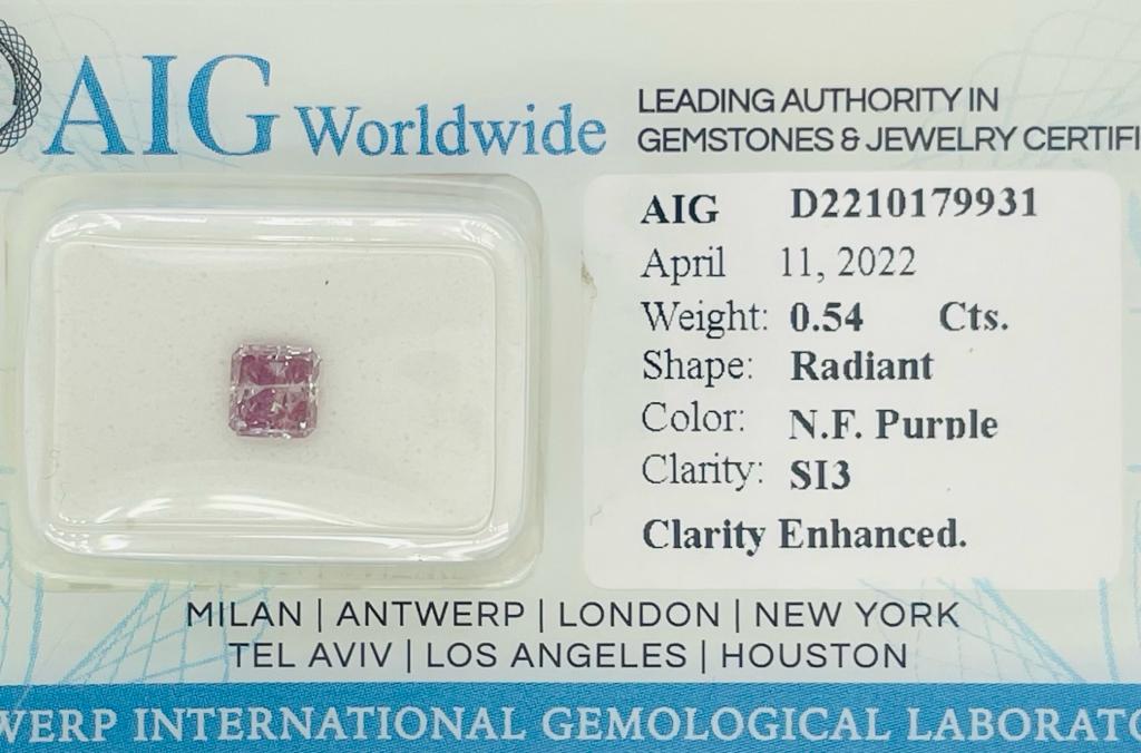 Lot 90 | DIAMANTE 0,54 CT FANCY VIOLA - SI3 - TAGLIO RADIANTE - F20415