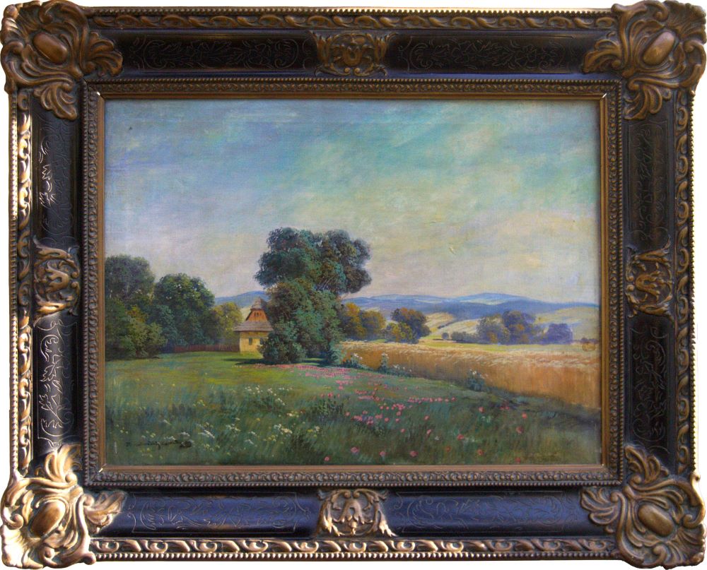Pittore della prima metà del XX secolo. Paesaggio con campo di grano.