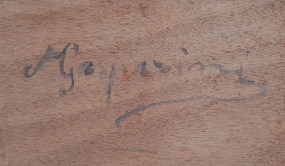Olio su compensato. Al verso firmato M. Gasparini. Con cornice.