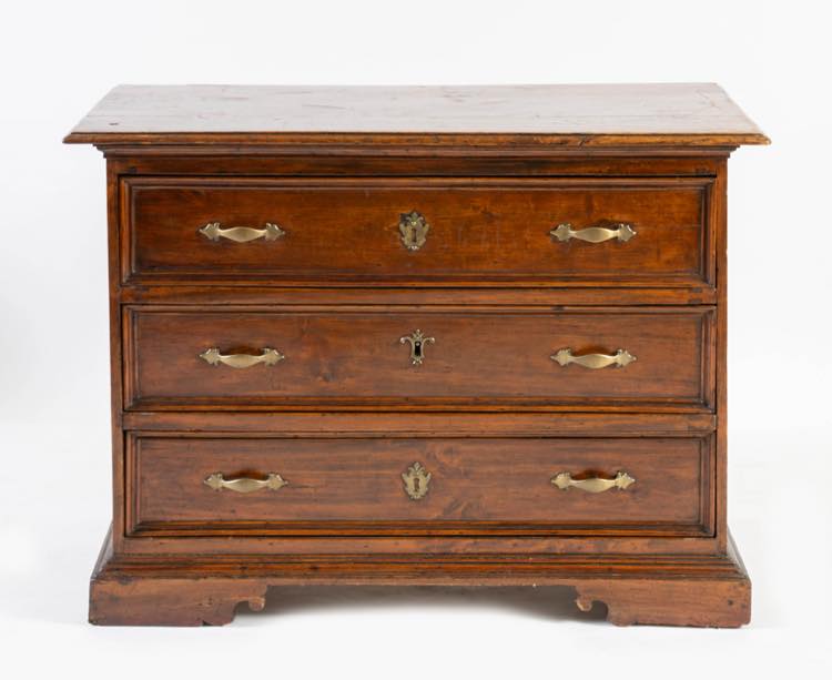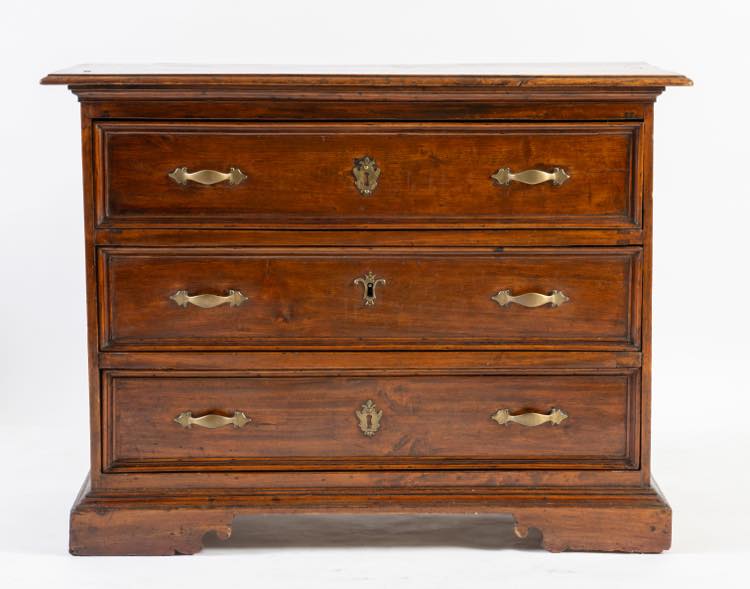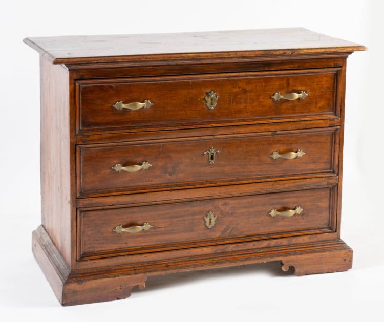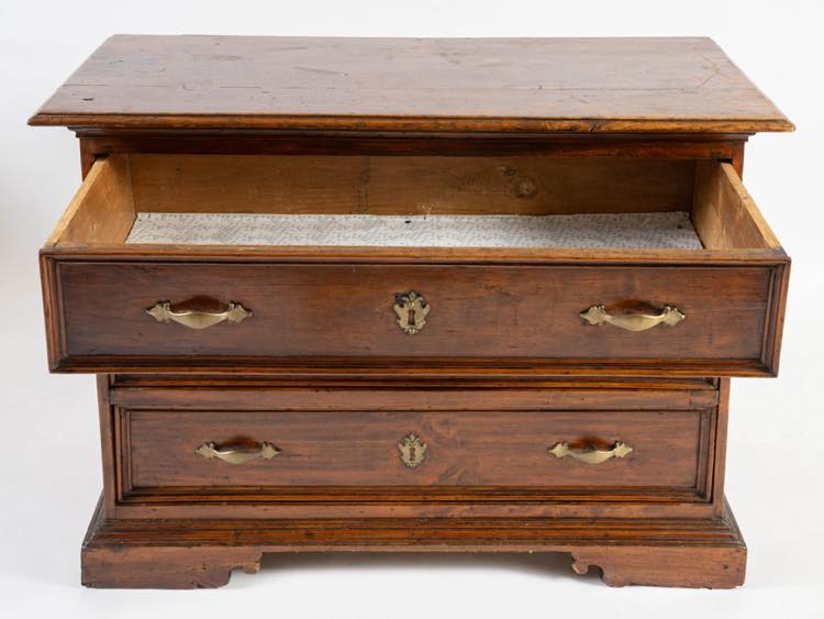 Manifattura emiliana, ultimo quarto del XVII secolo. Piccolo canterano in legno dolce.