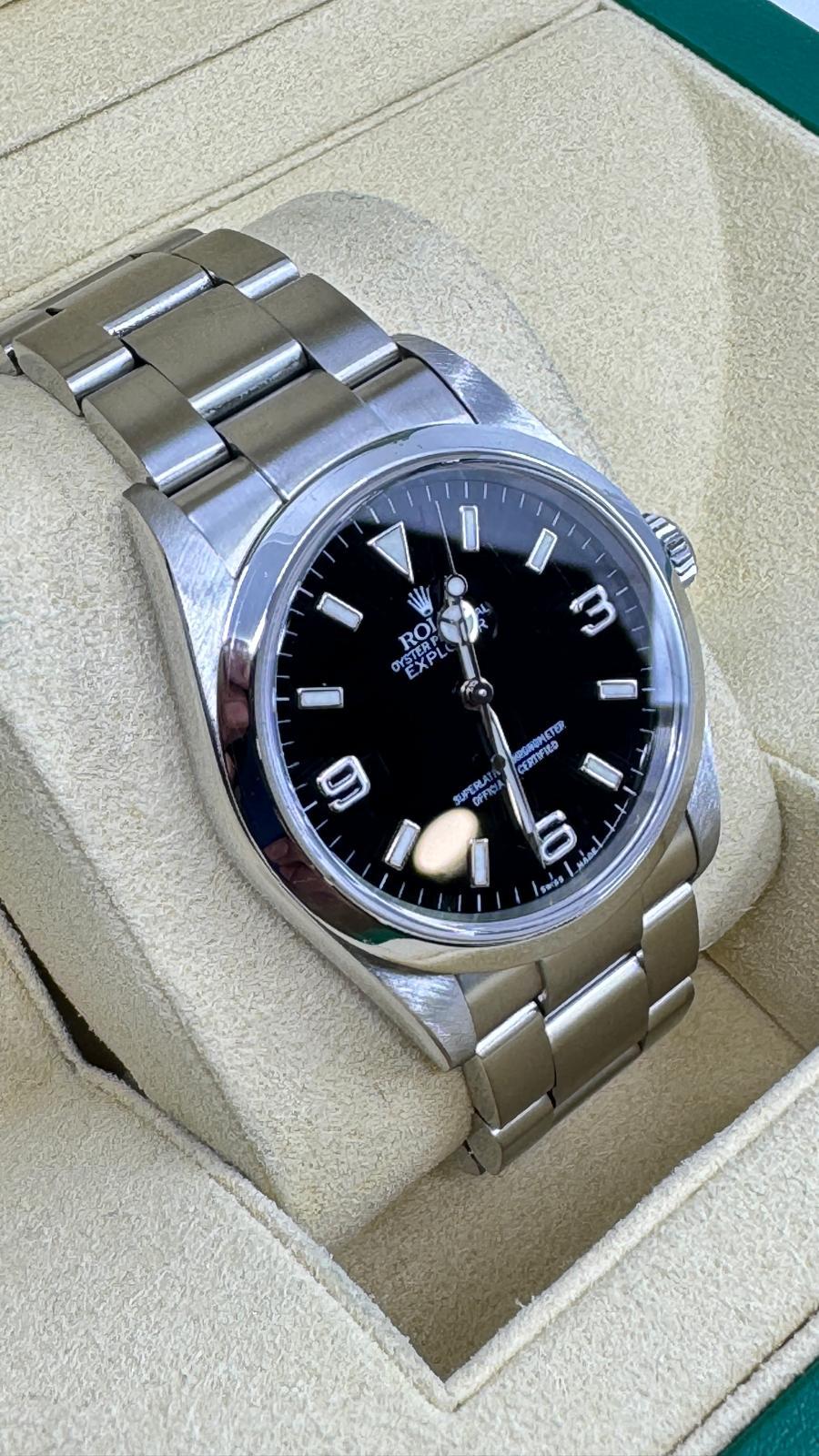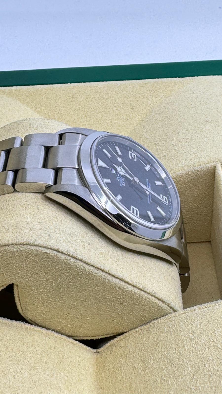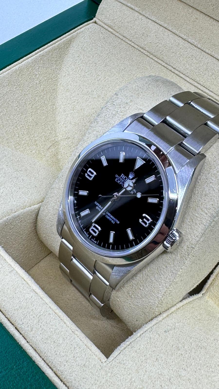 Marca Rolex Modello Explorer Referenza 114270 Carica Automatico Materiale della cassa Acciaio Materiale cinturino Acciaio Anno 2004 seriale F, garanzia rombi Condizione Ottimo Corredo: Garanzia Originale Rolex, no box Diametro 36 mm Impermeabile 10 ATM Vetro zaffiro Quadrante Nero
