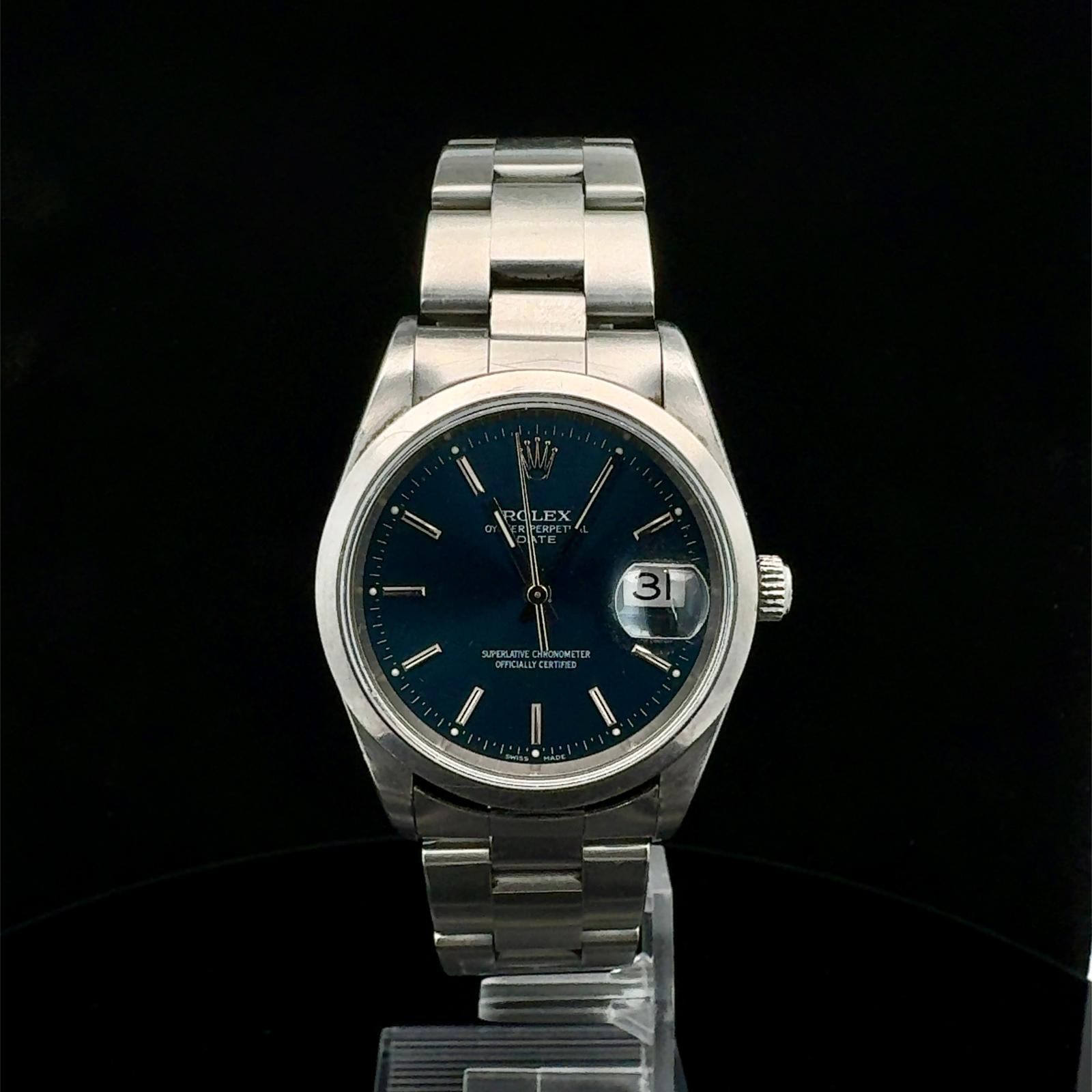 Marca Rolex Modello (Orologio) Oyster Perpetual Date Numero di referenza 15200 Carica Automatico Materiale della cassa Acciaio Materiale cinturino Acciaio Anno di produzione 2000 (Anno approssimativo) Condizione Ottimo (di seconda mano, segni di usura assenti o appena visibili) documenti originali Rolex, no box Carica Automatico Materiale della cassa Acciaio Diametro 34 mm Impermeabile 10 ATM Materiale lunetta Acciaio Vetro Vetro zaffiro Quadrante Blu Numeri sul quadrante Senza numeri Cinturino Materiale cinturino Acciaio Colore cinturino Acciaio Chiusura Déployante Materiale chiusura Acciaio
