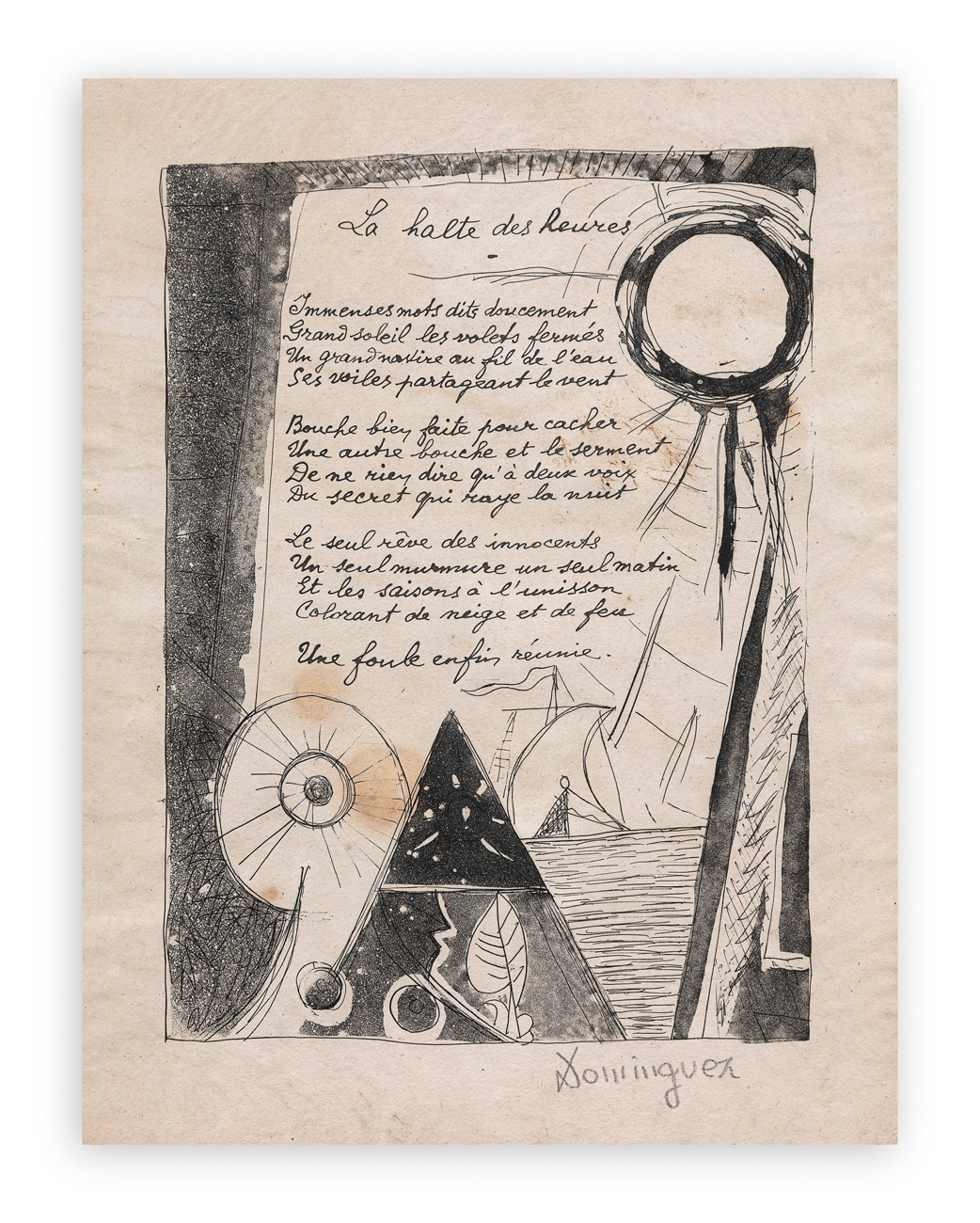 Opera originariamente facente parte del volume 'Poésie et Verité' con testi di Paul Eluard illustrati da 31 acqueforti originali e una litografia a colori di Oscar Dominguez
