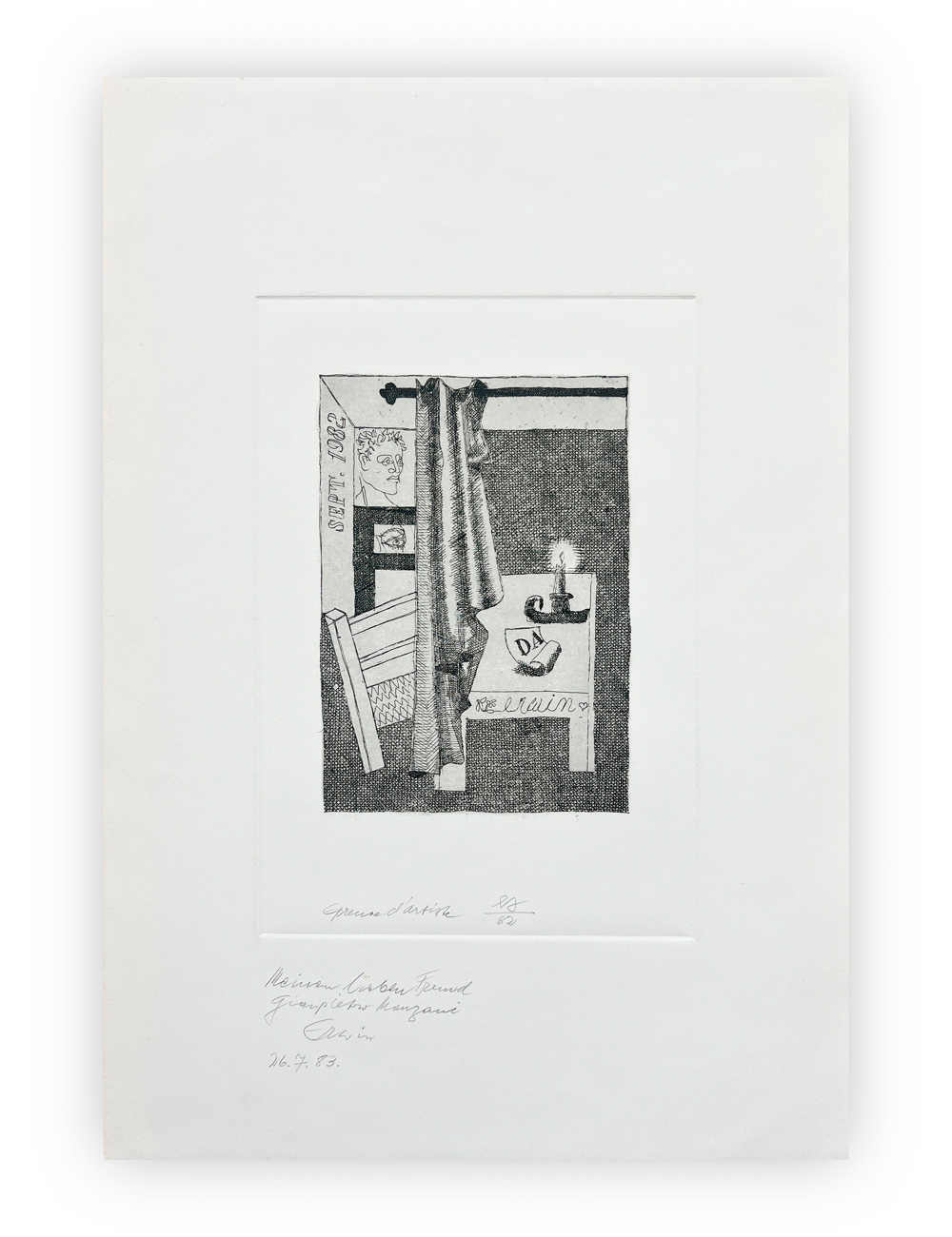 Firma indecifrata, dedica ad personam datata 26.7.83 e numerazione (Esemplare Epreuve d'Artiste) a matita al fronte