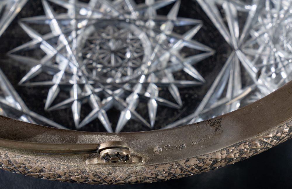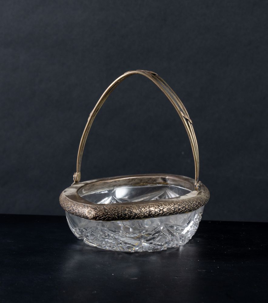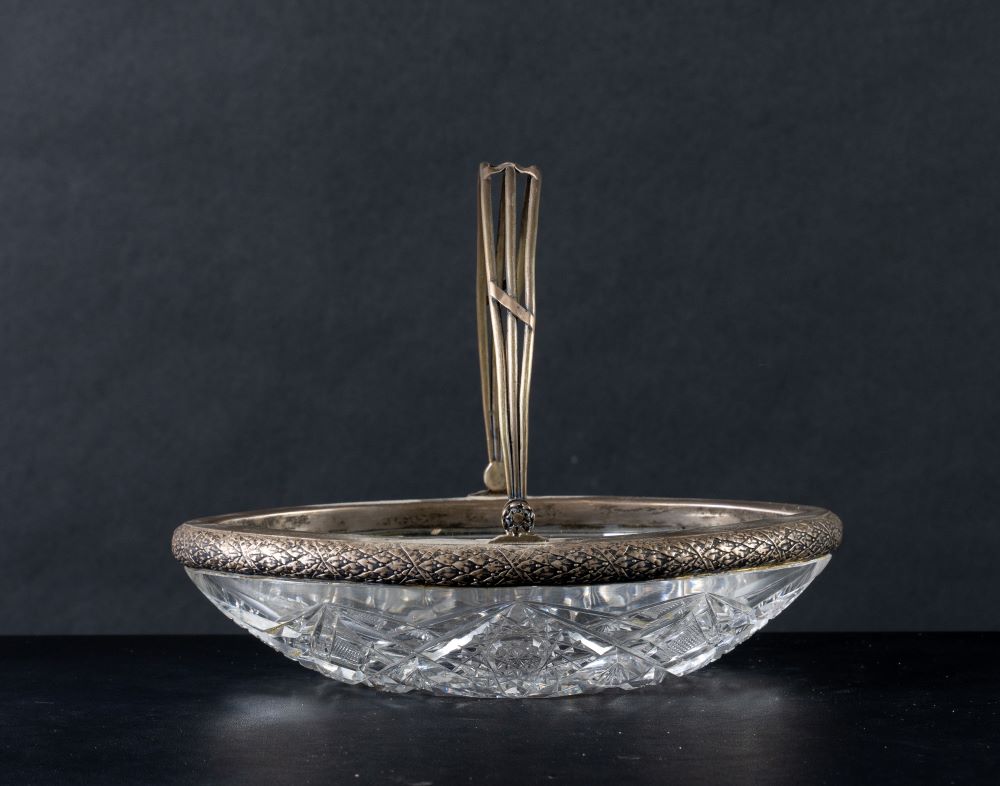 Peter Carl Fabergé (San Pietroburgo 1846 - Losanna 1920), attr,. Cestina in cristallo e argento.
