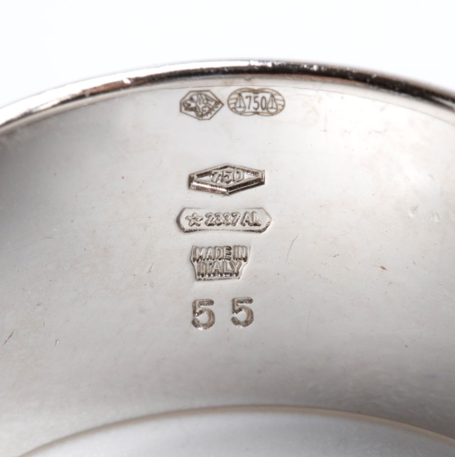 Punzonato: "750 - 2337 AL - MADE IN ITALY- 55". Misura IT 14 - Misura US 7. Peso 12,5 gr.