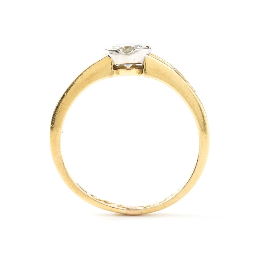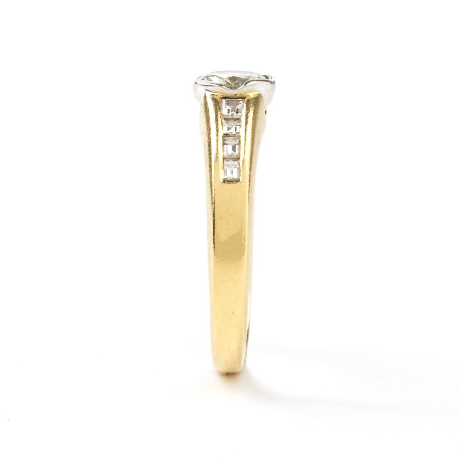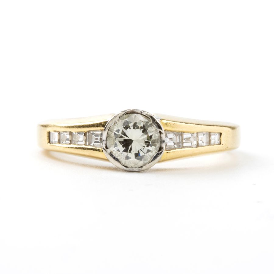 in due colori d'oro 18k, incastonato con diamante centrale taglio brillante affiancato da due file di diamanti taglio carrè.