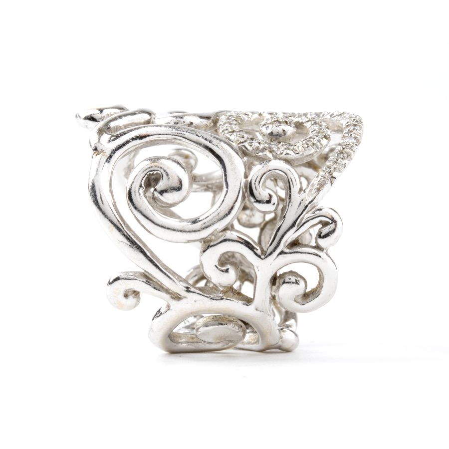a motivo di volute di nastri in diamanti pert totali 0.28 ct.