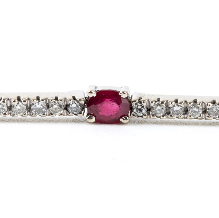 con linea di elementi a barretta in oro bianco 18k incastonati con diamanti, interrotti da rubini.