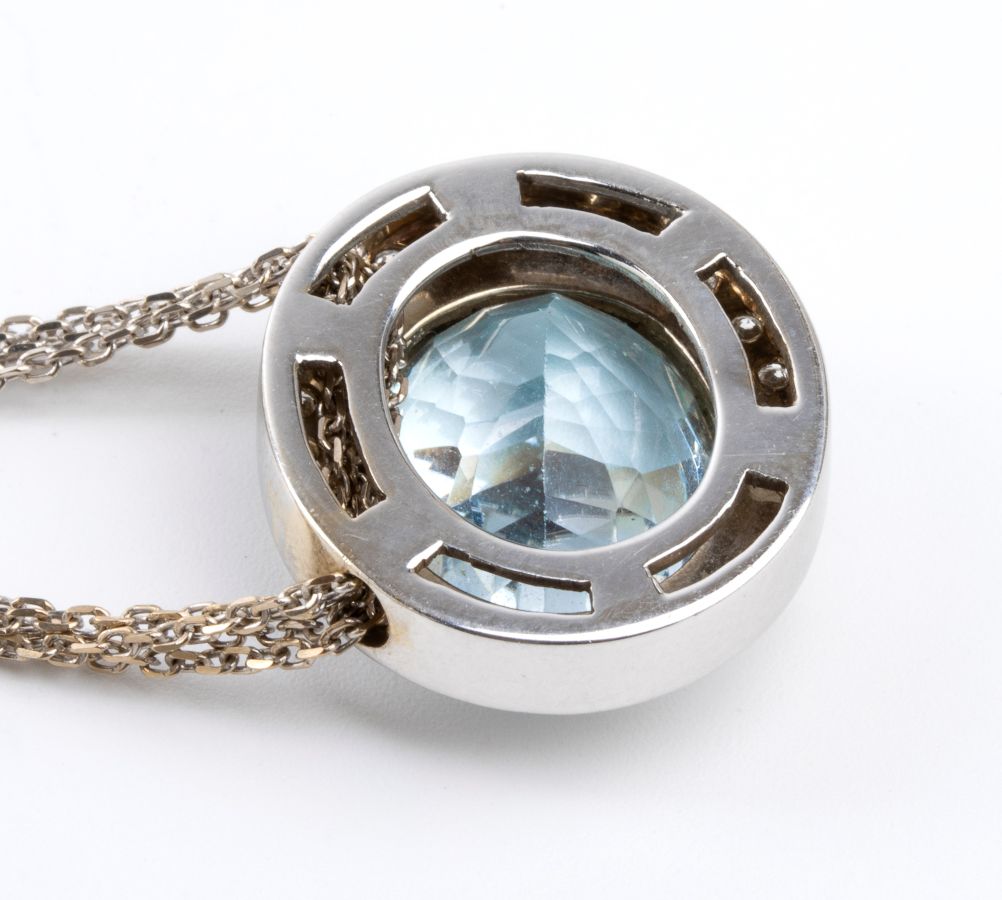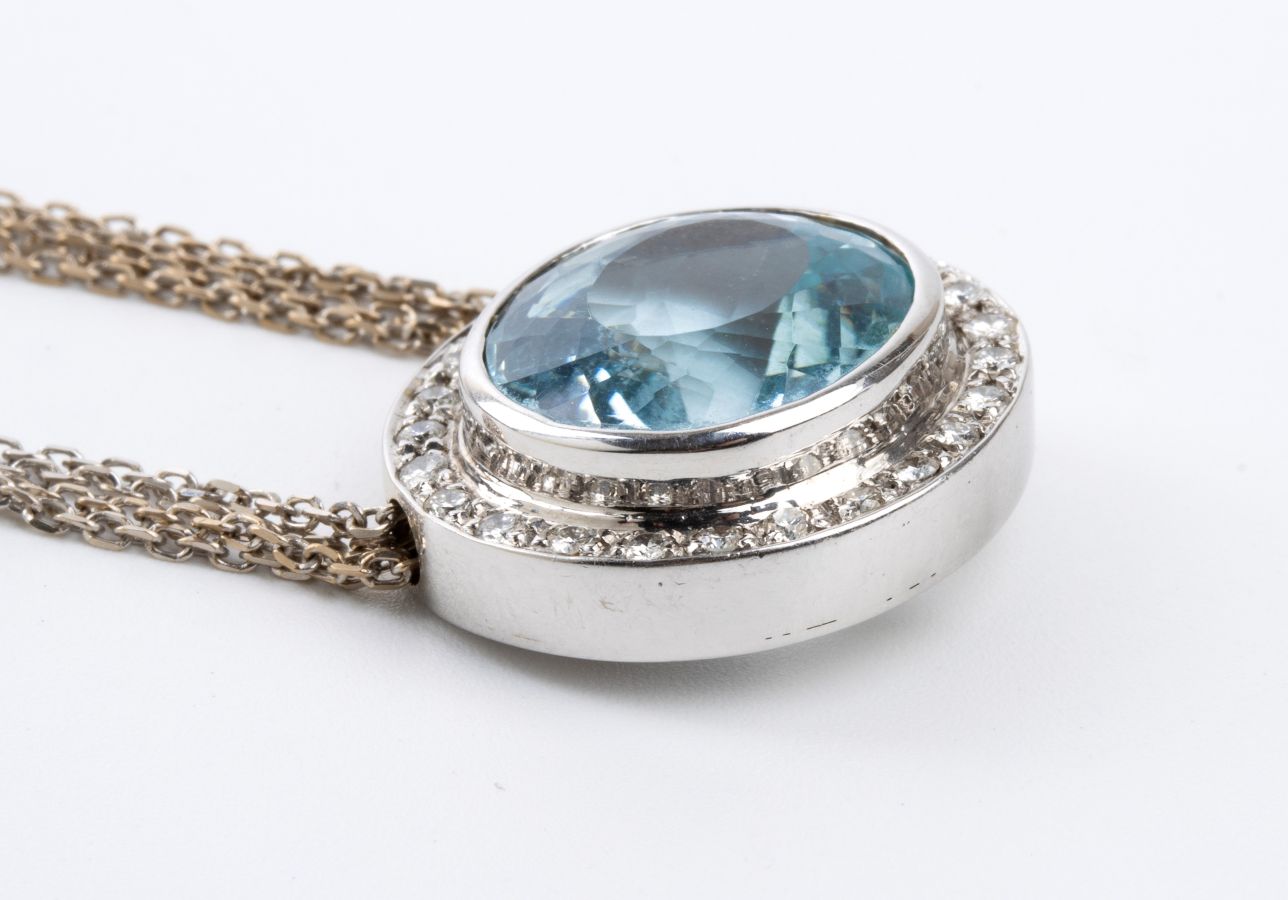 Girocollo e pendente con in oro con diamanti ed acquamarina