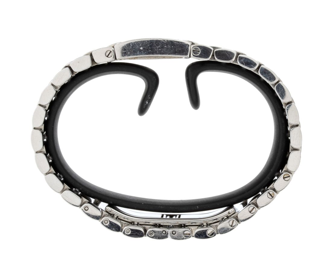 cassa in acciaio con bracciale integrato, quadrante in acciaio a specchio, movimento al quarzo. Referenza MV045197, matricola 4074398.