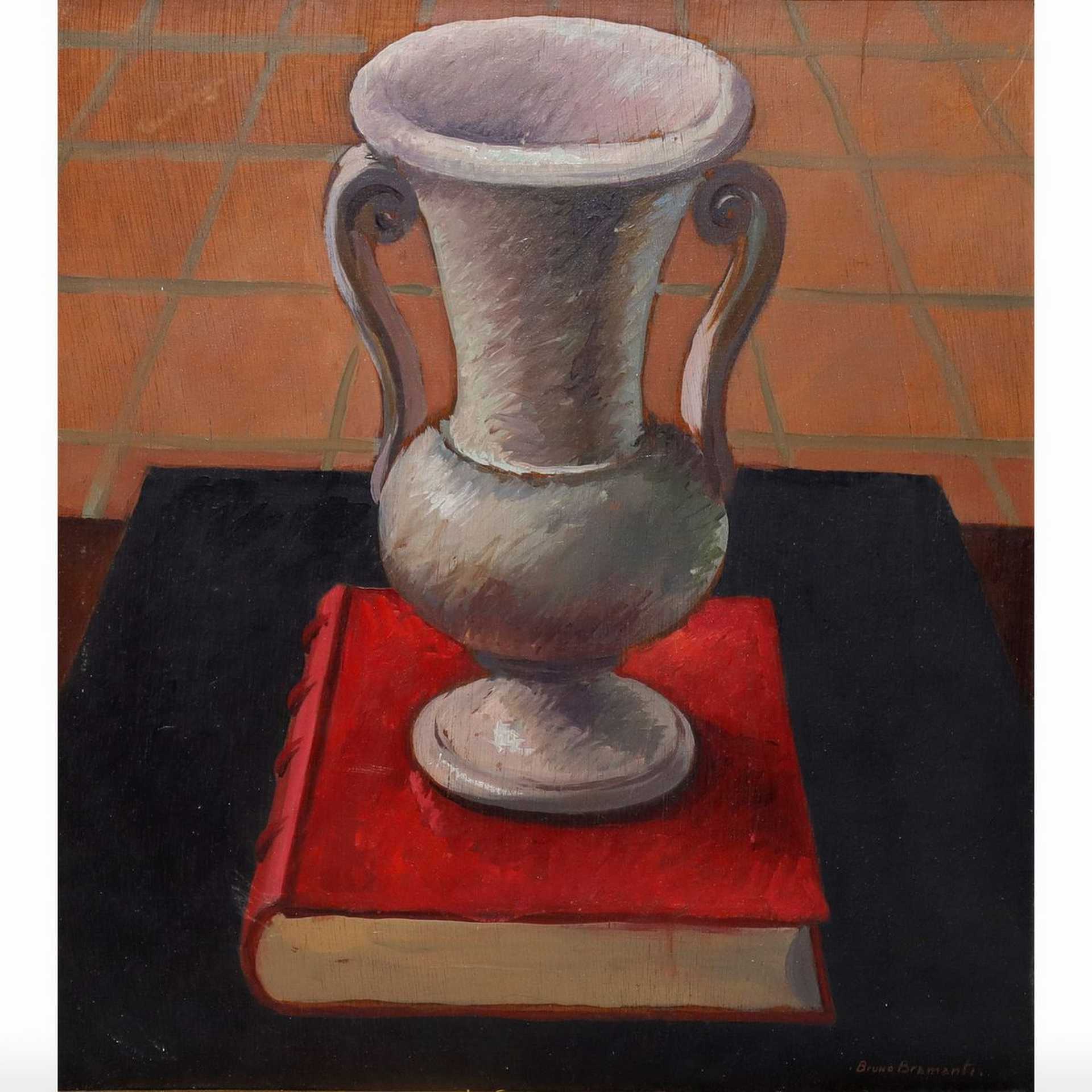 Natura morta, vaso su libro H cm 30 x 27, in cornice cm 43 x 40 Olio su tavola