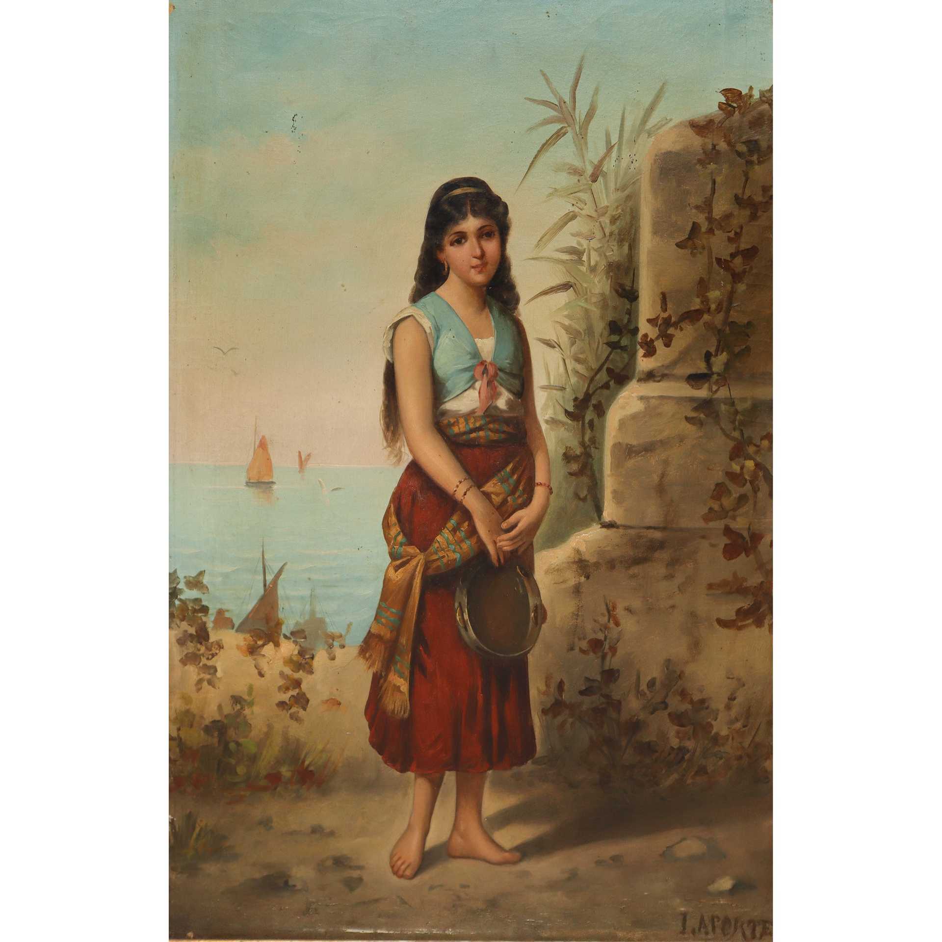 Lot 33 | Marceline Laporte (1839-1906) - Giovane donna con tamburello alla marina