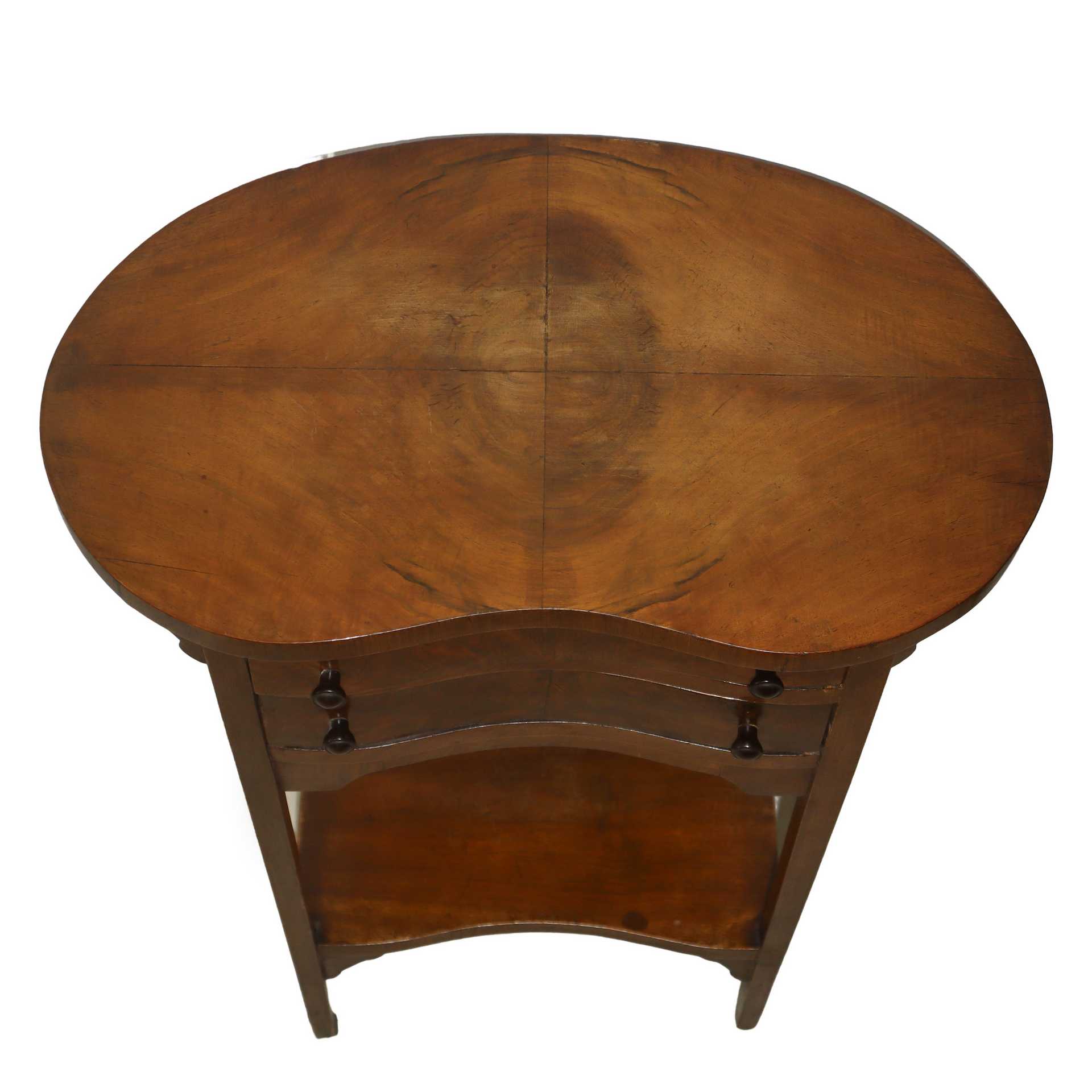 Tavolino a fagiolo in legno di noce con due cassetti sottopiano e quattro gambe, primi 20° secolo