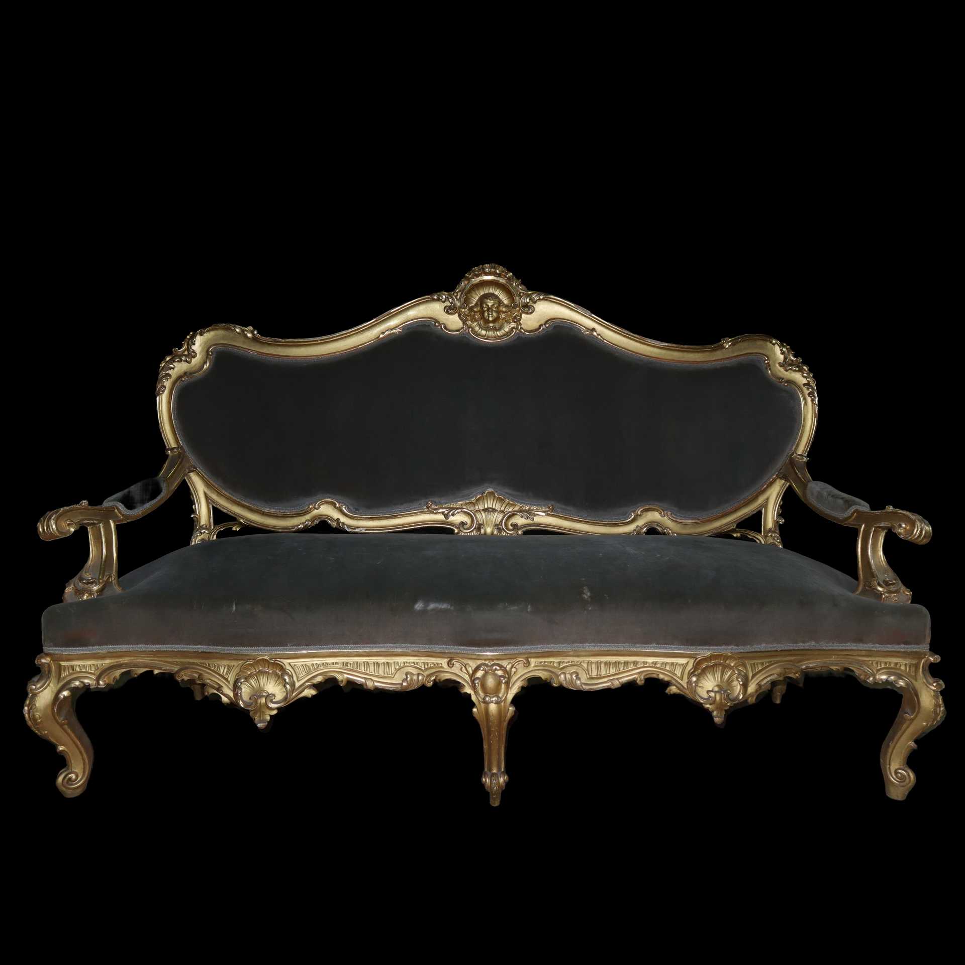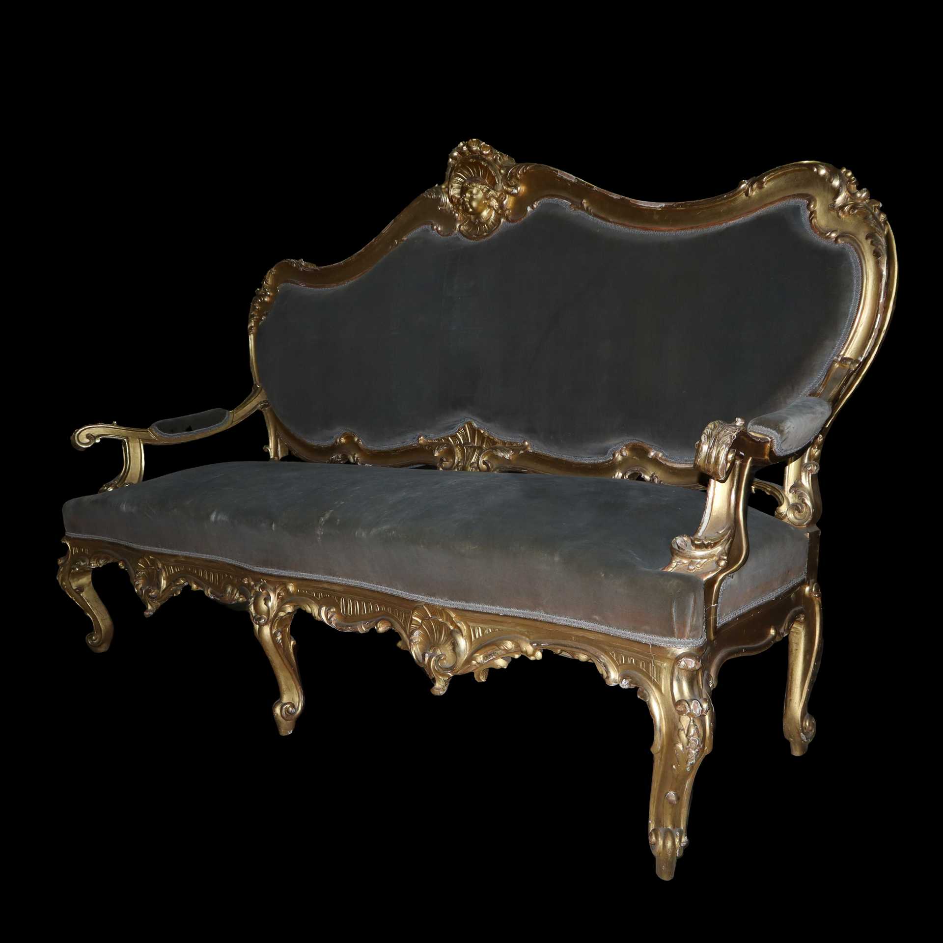 Previous Lot 157 Next Art La Rosa Casa d'Aste - Viale Africa 12, 95129 CATANIA #110: Asta Eclettica #110: Asta Eclettica Friday 13 September 2024 hours 16:30 (UTC +01:00) Divano in legno dorato, fine 19° secolo Divano in legno dorato, fine 19° secolo H cm 125x195x62