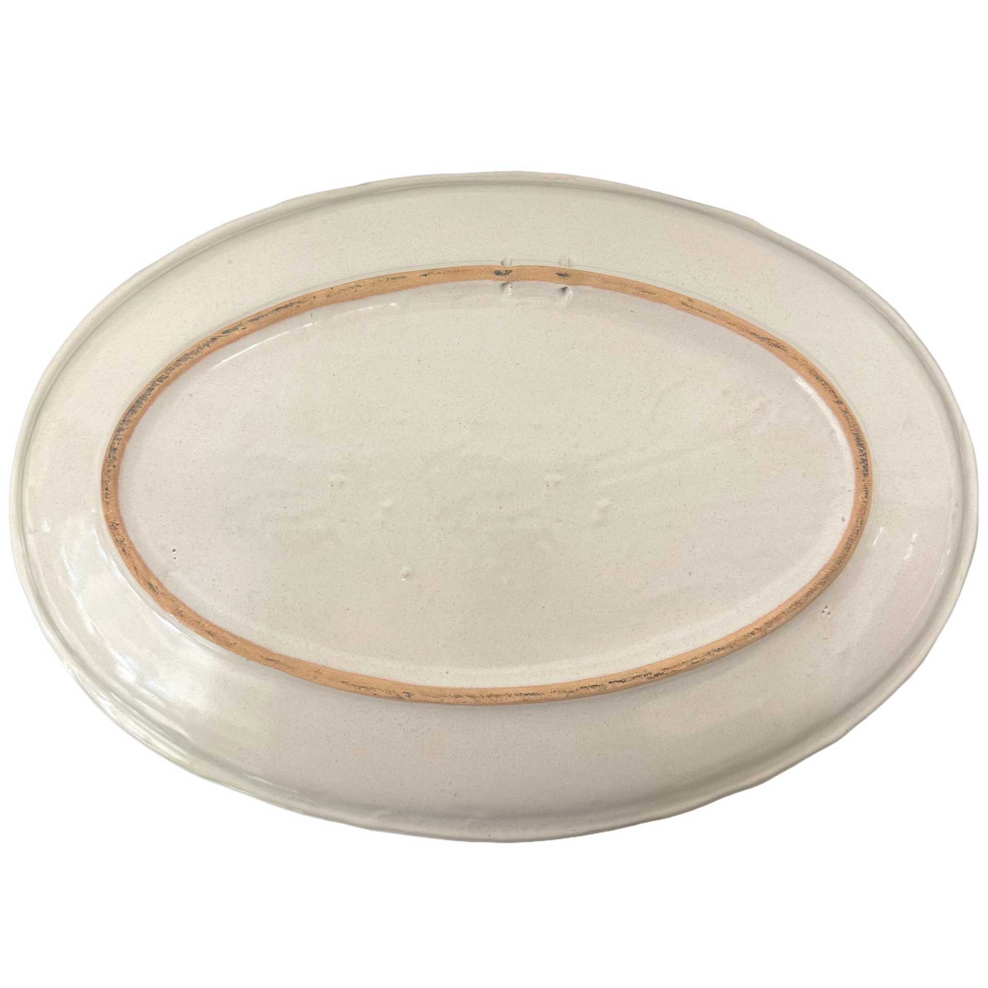 Piatto ovale in maiolica policroma nei toni del blu, 70's