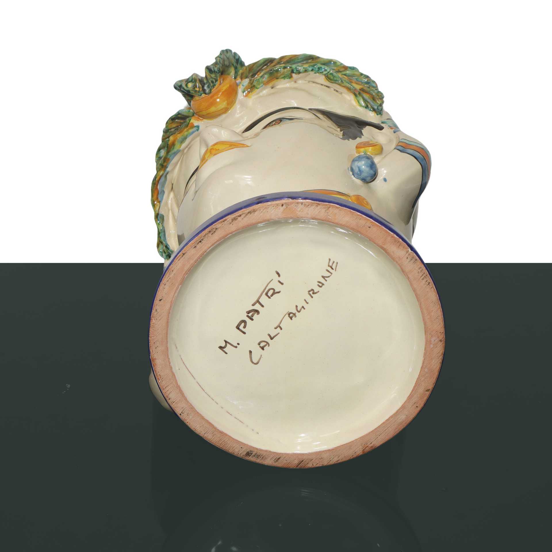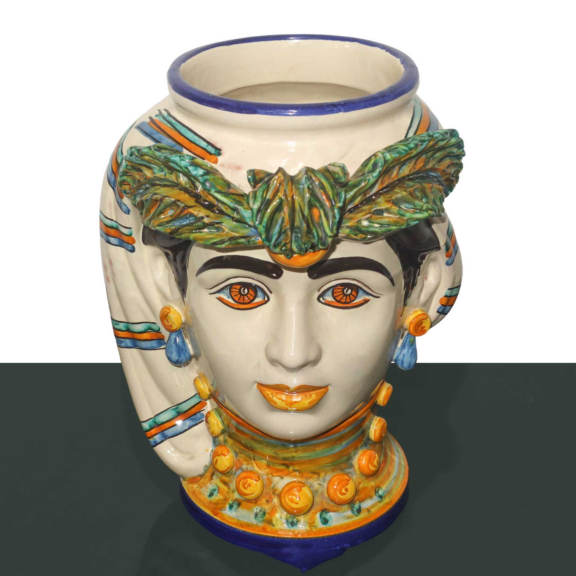 Vaso testa di donna in maiolica di Caltagirone cm 27,5X22