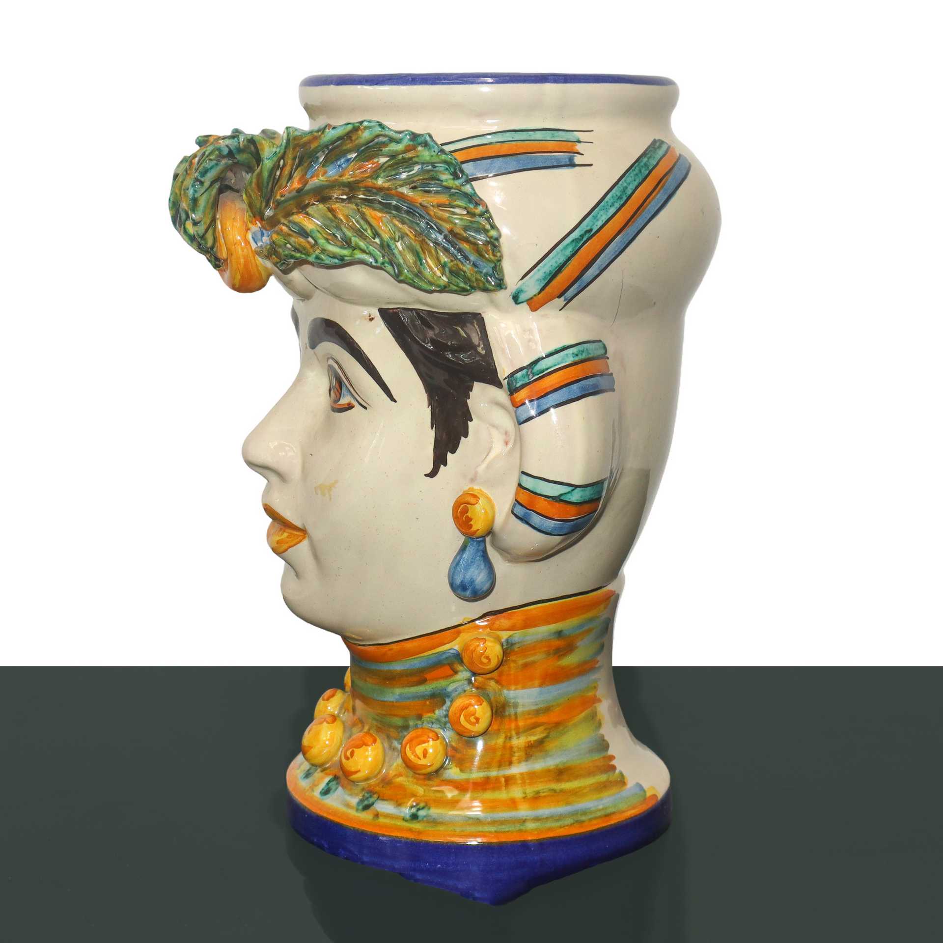 Vaso testa di donna in maiolica di Caltagirone