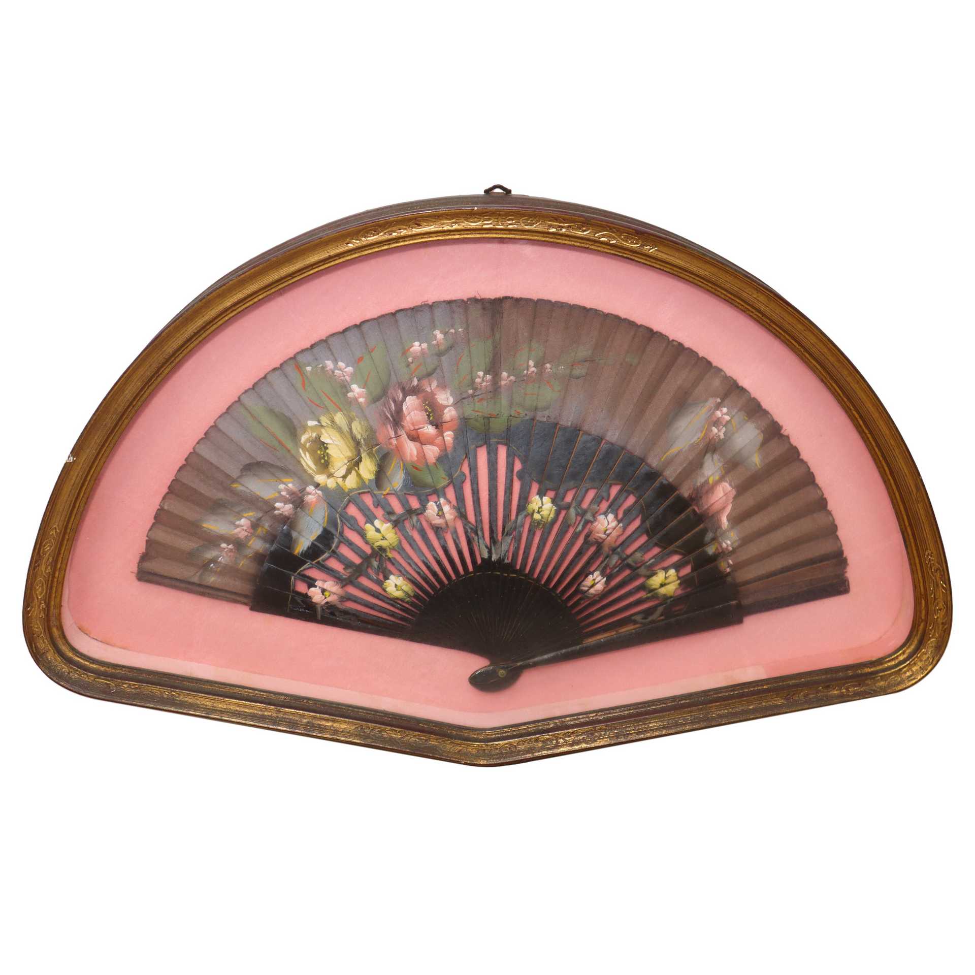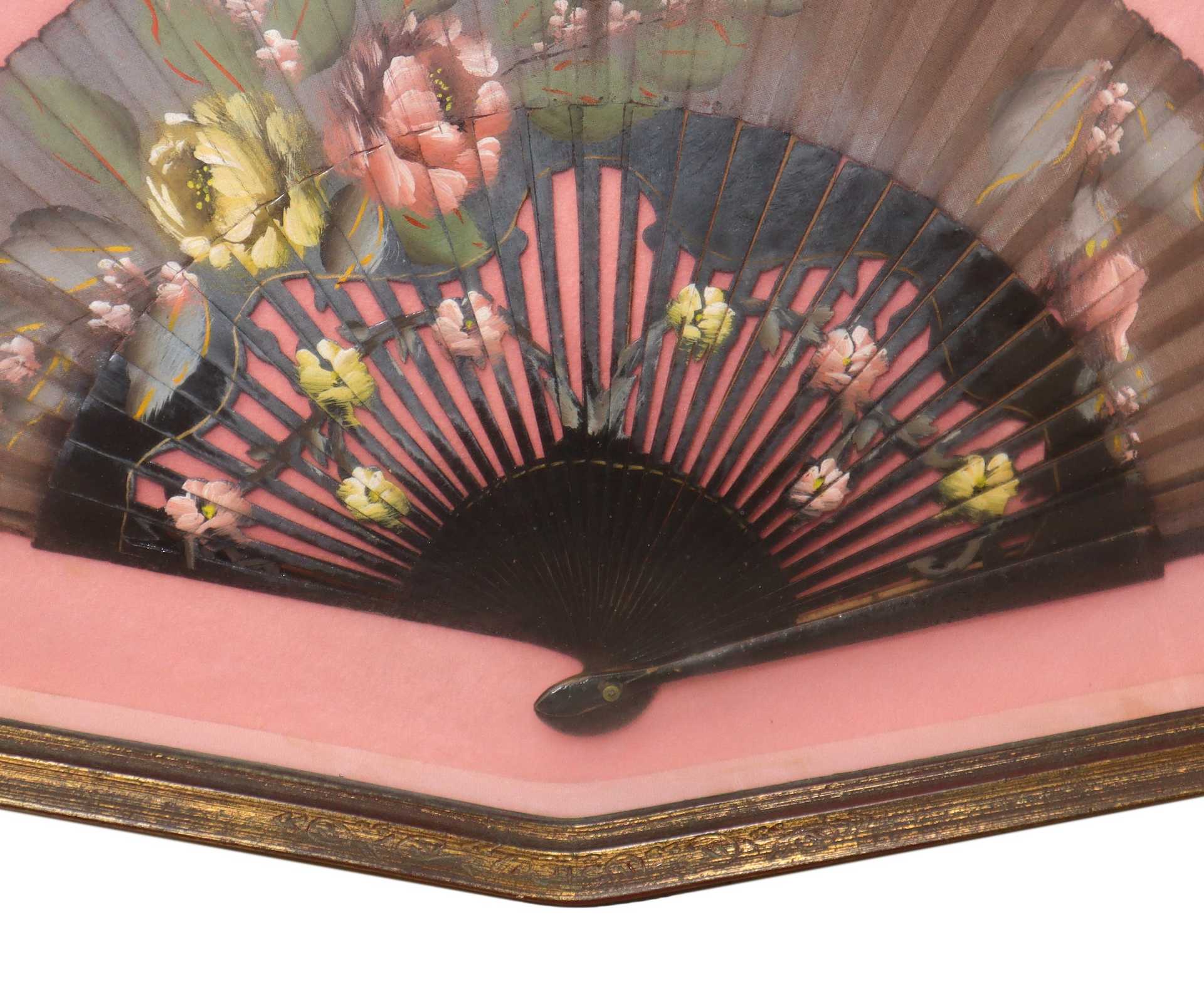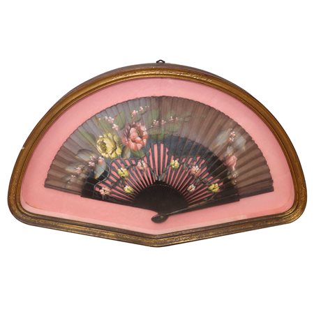 Ventaglio con stecche lacchate nere e dipinto a fiori, 20° secolo H cm 33x53 In ventaglieraIn ventagliera