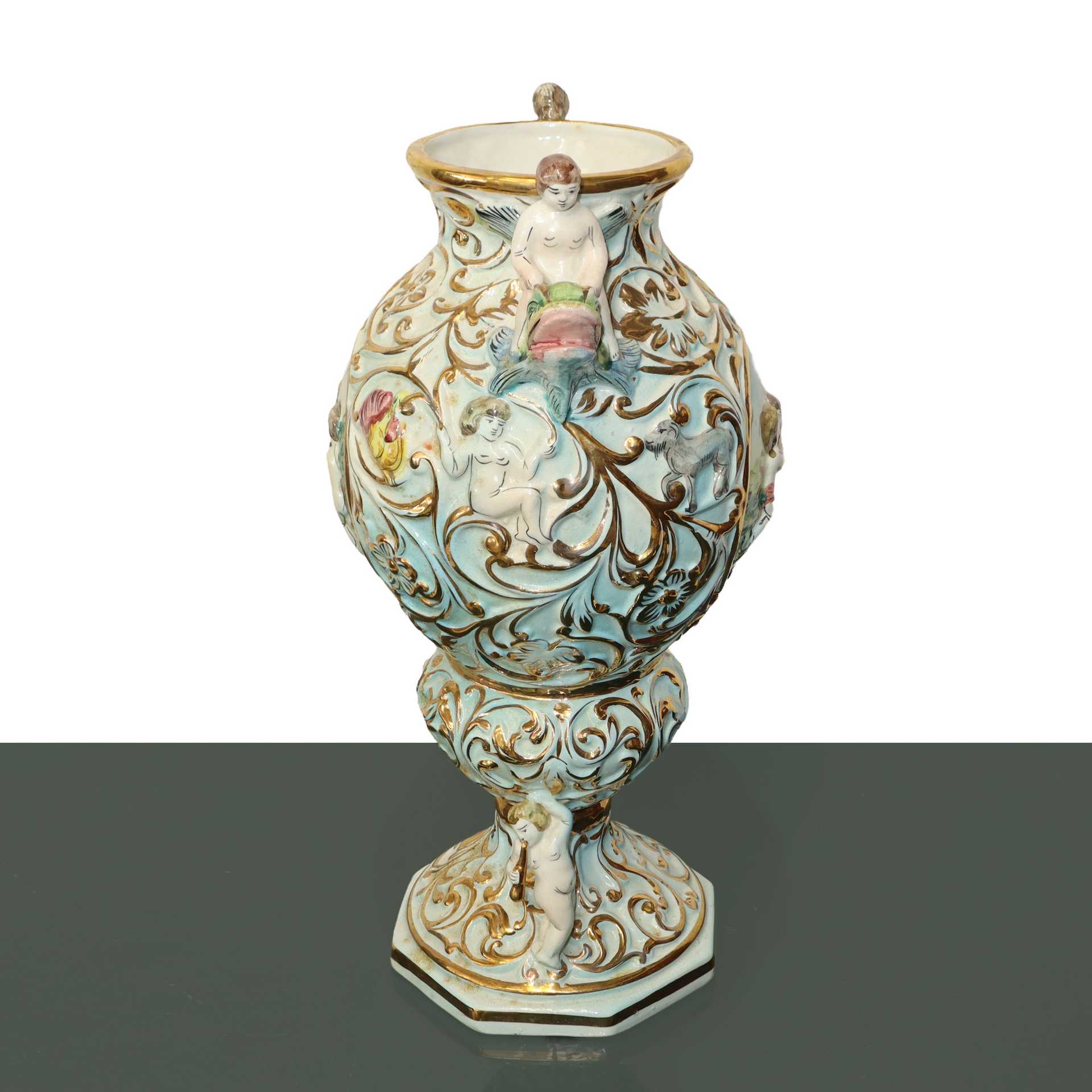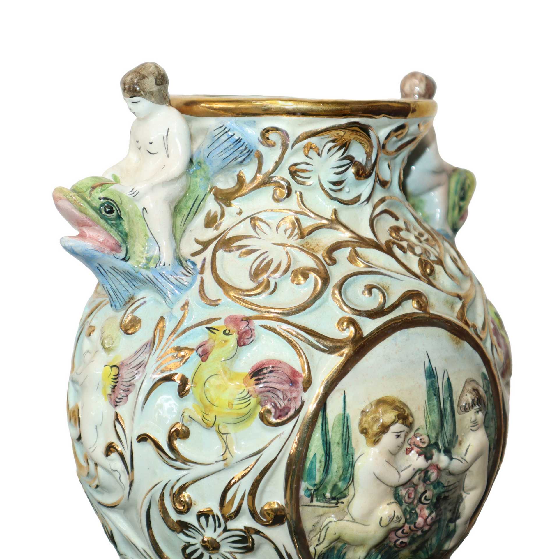 Vaso in porcellana di Capodimonte policroma con puttini, 20° secolo