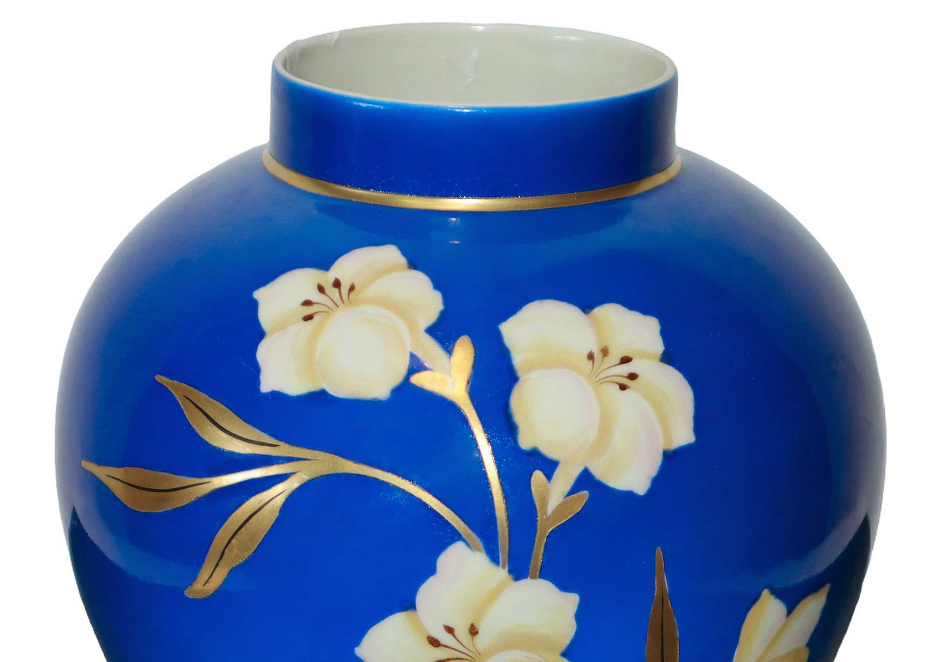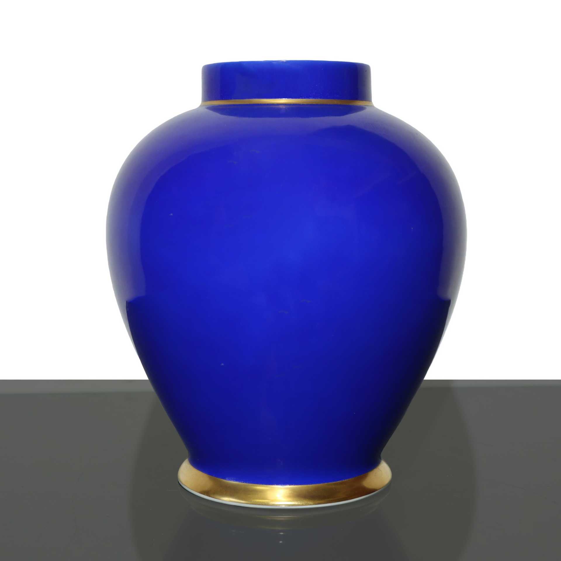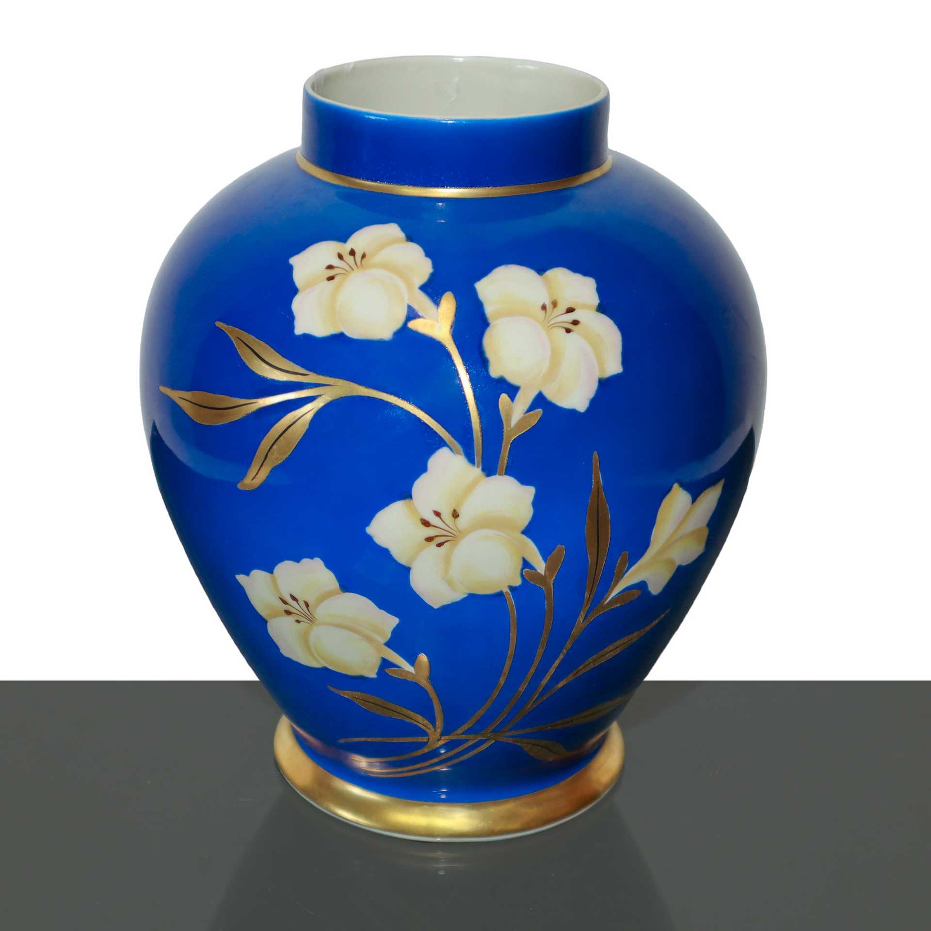 Bavaria Johann seltmann vohenstrauß - Vaso in porcellana con decorazioni floreali su fondo blu, 20° secolo H cm 21 Marchio alla baseMarchio alla base