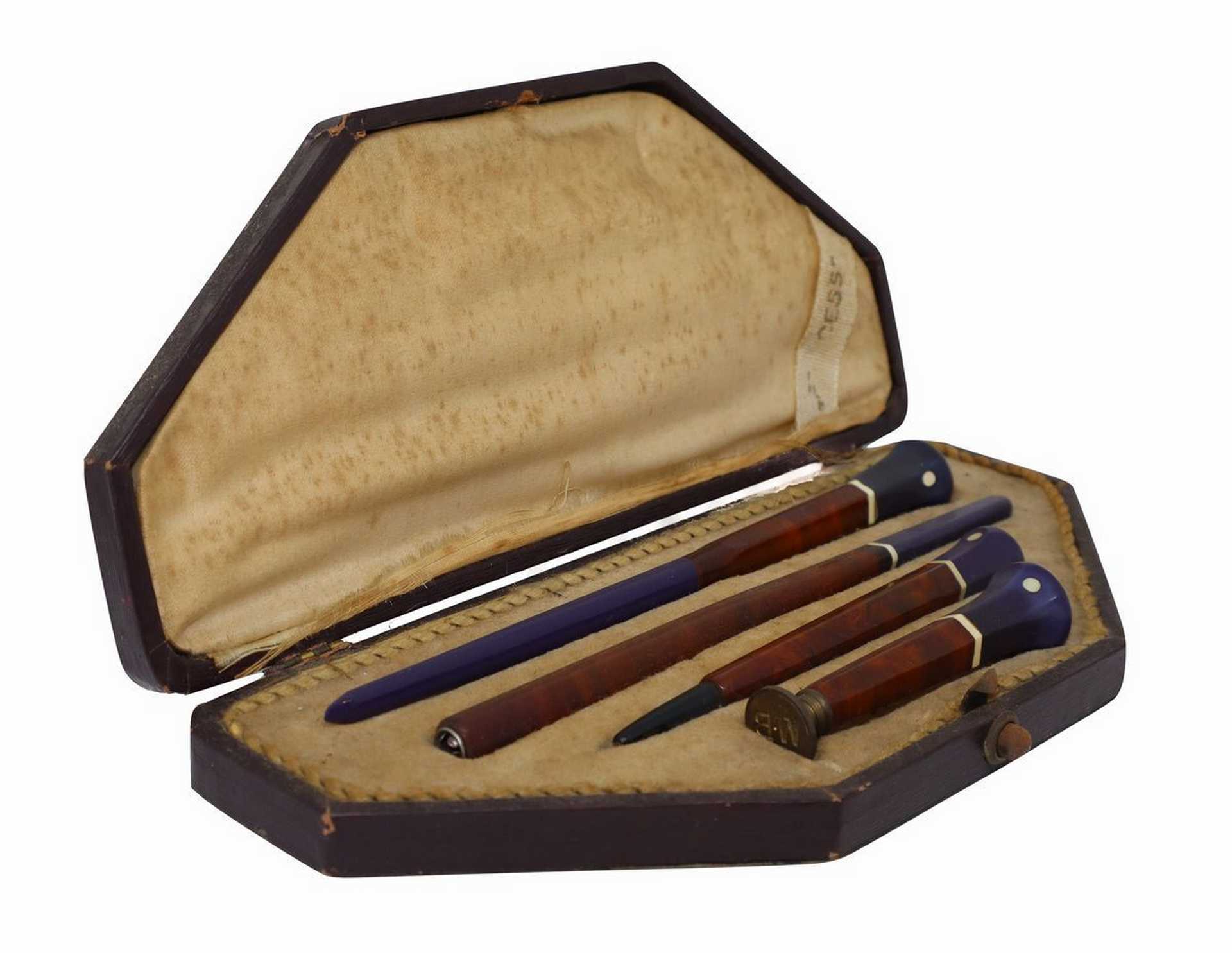 Antico set in scatola a 4 pezzi, fine 19° secolo
