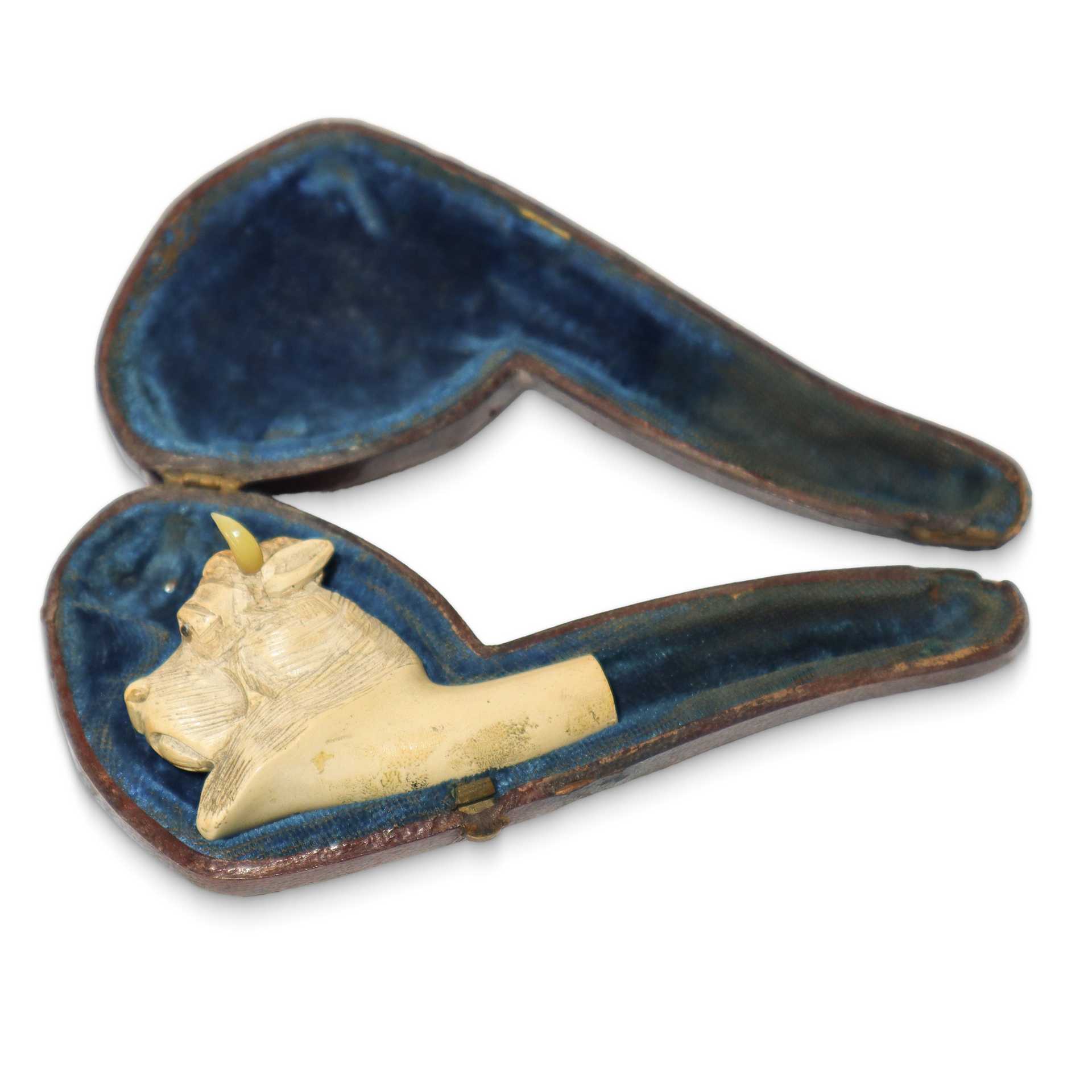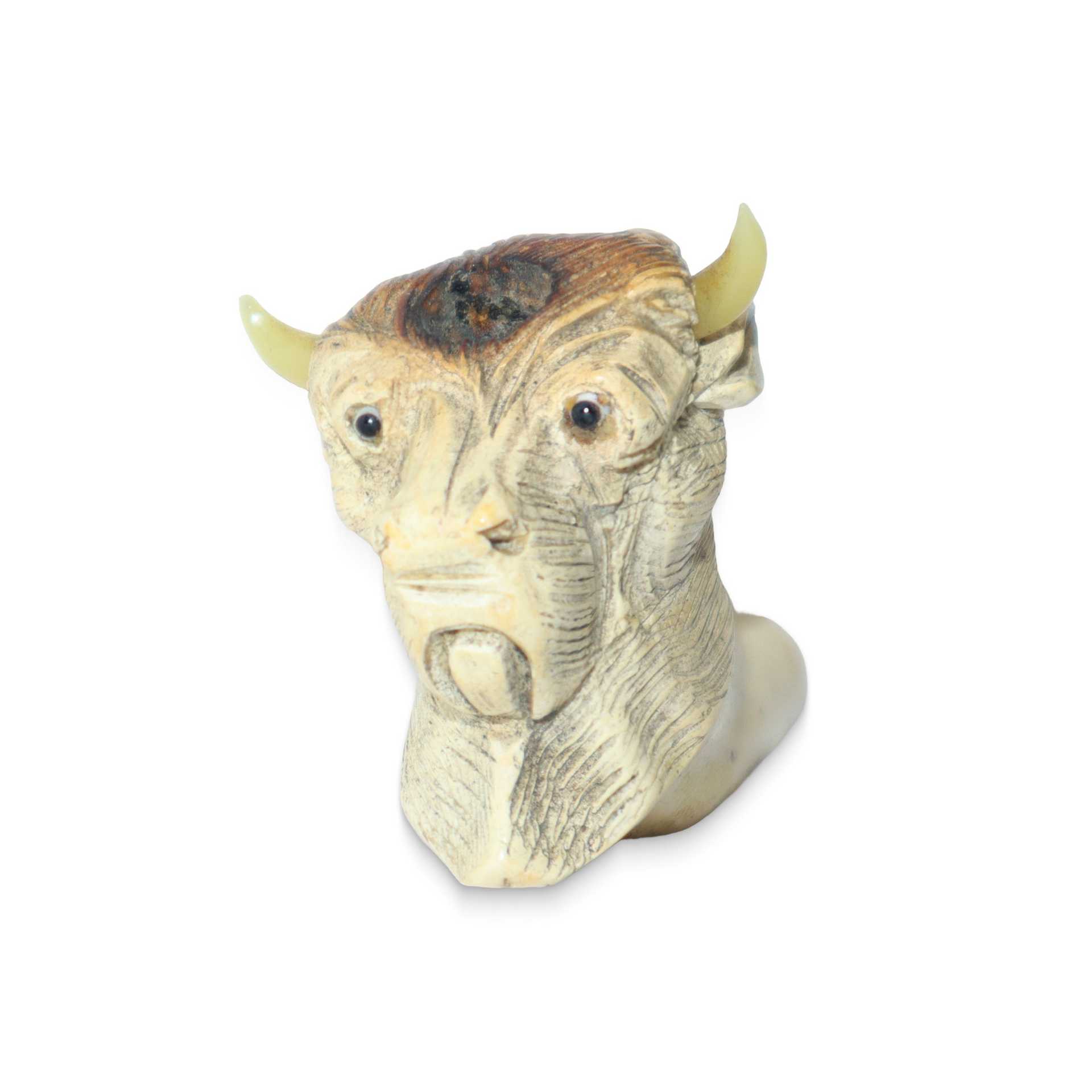 Testa di toro in schiuma di mare dentro custodia cm 3X6 in custodia 7X12