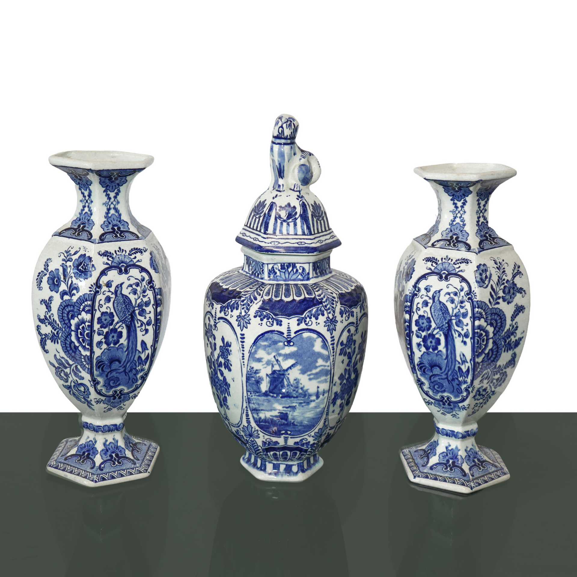 Delfts Olanda Boch - Trittico di tre vasi due vasi cm 31 poutiche cm 36