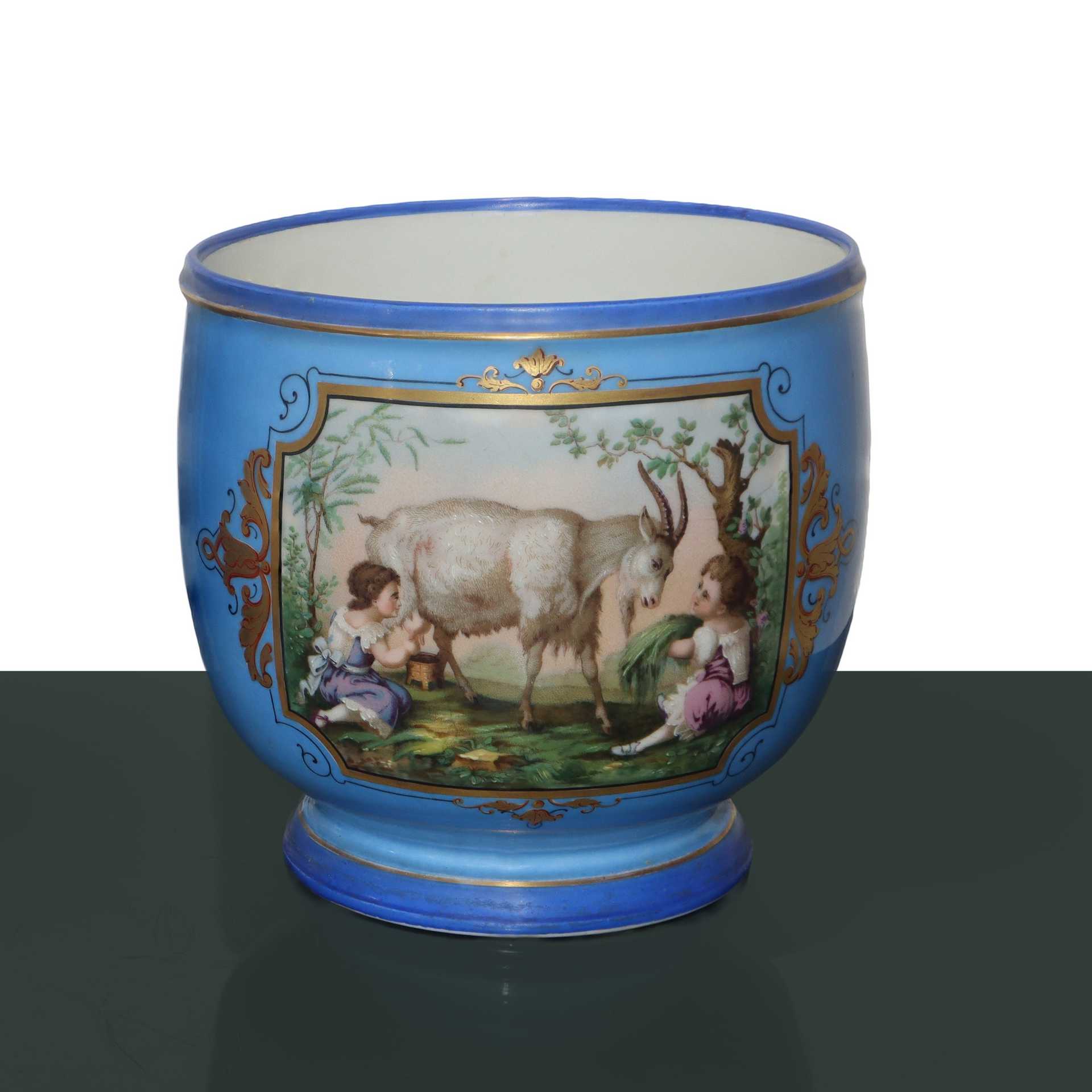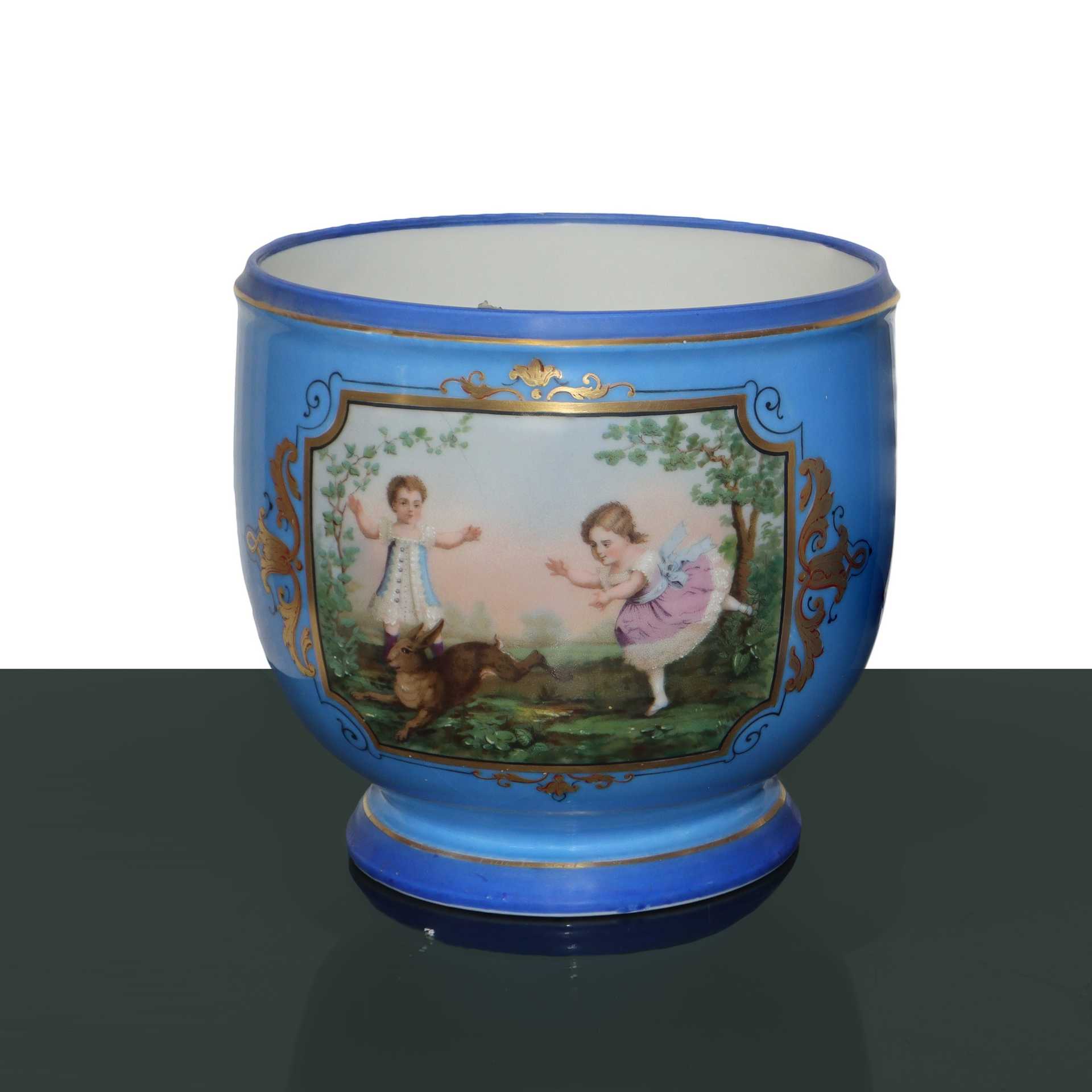 Coppia di vasi blu in stile Sevres cm 17X18 Dipinti sul fronte con scene di vita bucolica.Dipinti sul fronte con scene di vita bucolica.