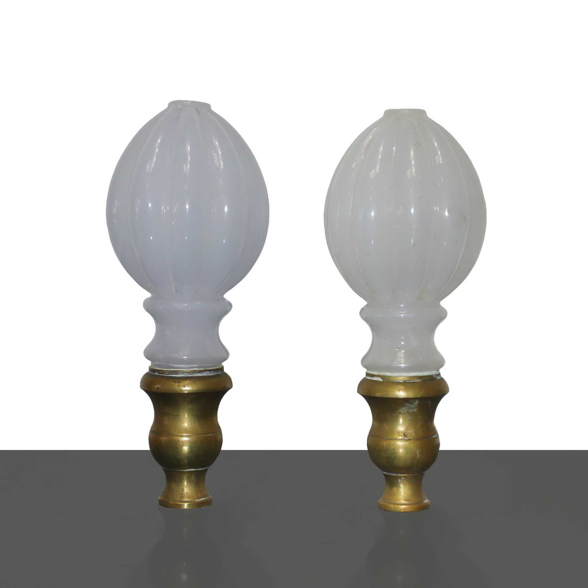 Coppia di pomoli da letto in vetro di Murano lattimo e ottone dorato H cm 19