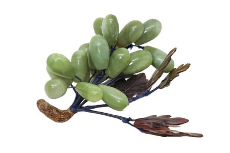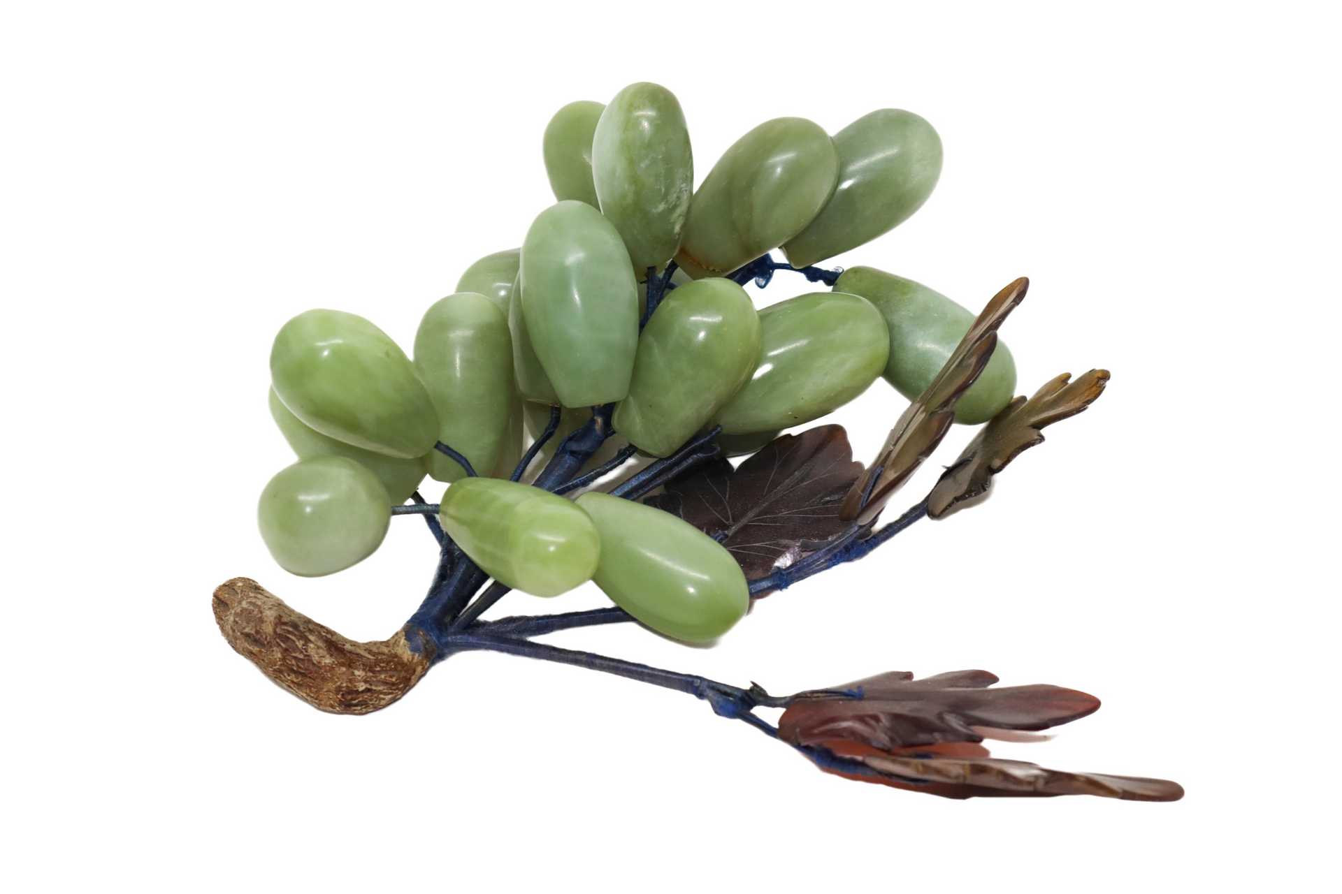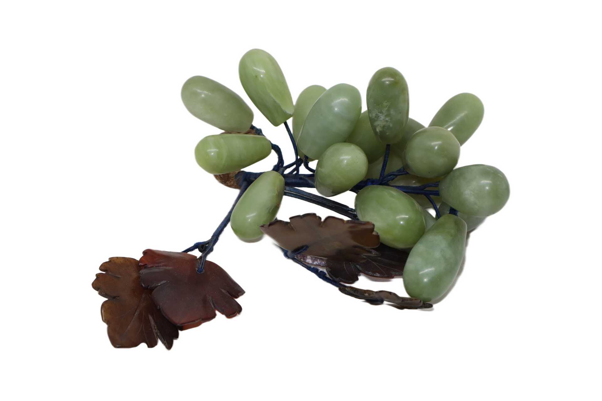Tralcio di grappolo d'uva in giada cm 22 Con foglie in corniola.Con foglie in corniola.