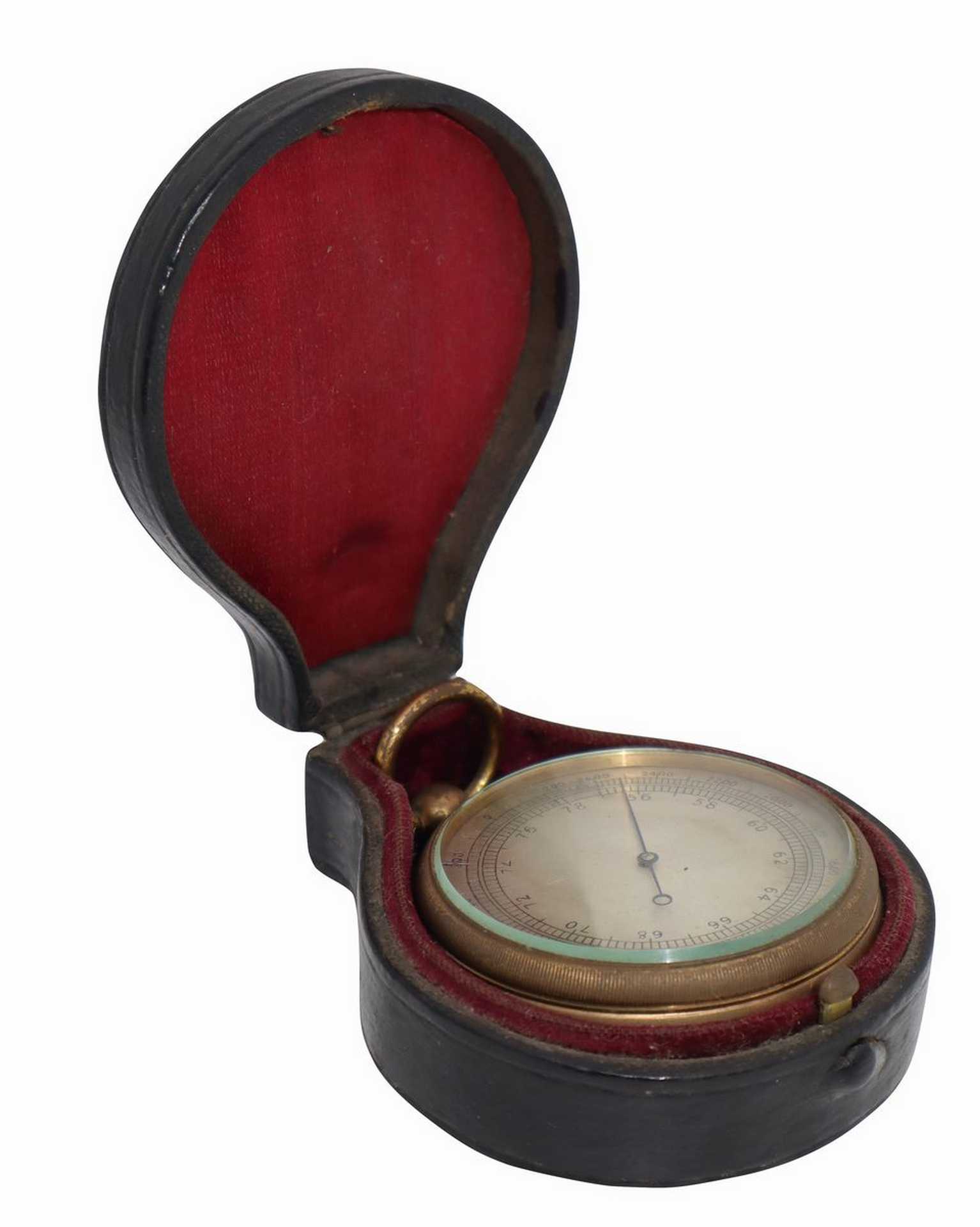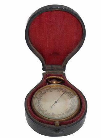 Antico barometro tascabile antico in scatola originale in pelle cm 8 In cassa metallo, con finitura dorata. In cassa metallo, con finitura dorata.