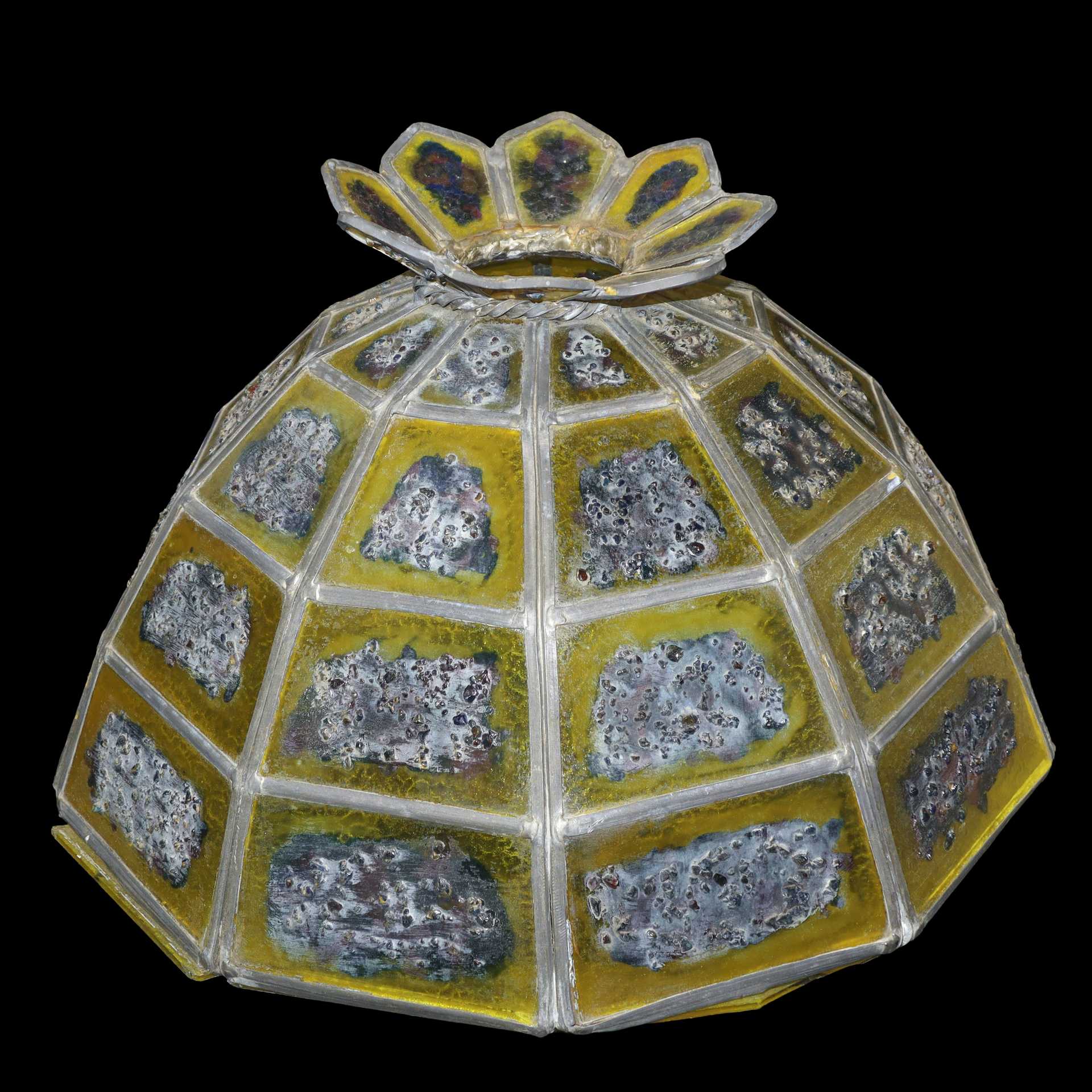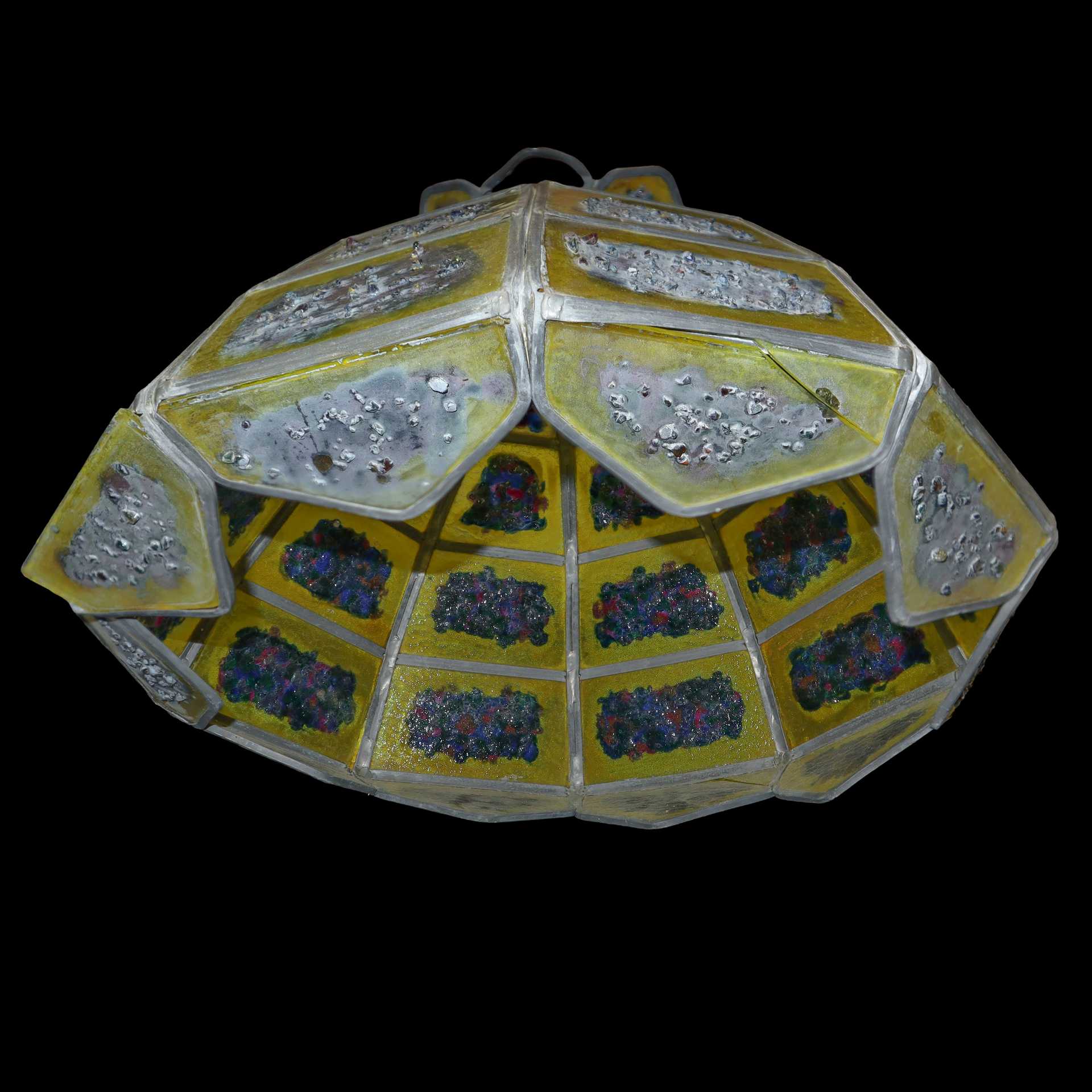 Lampadario stile Tiffany con vetri piombati verdi, 20° secolo H cm 35x50 Presenti rotturePresenti rotture