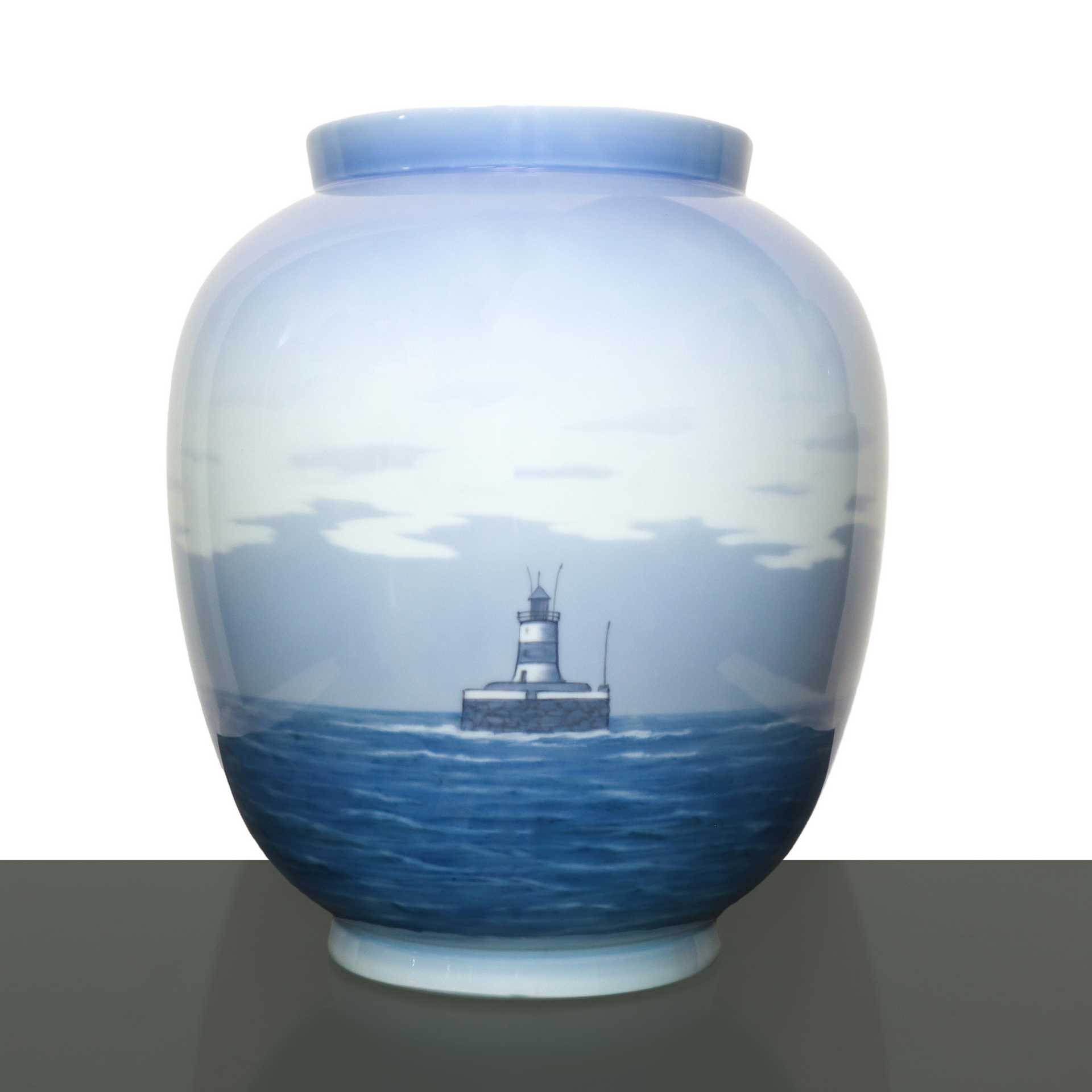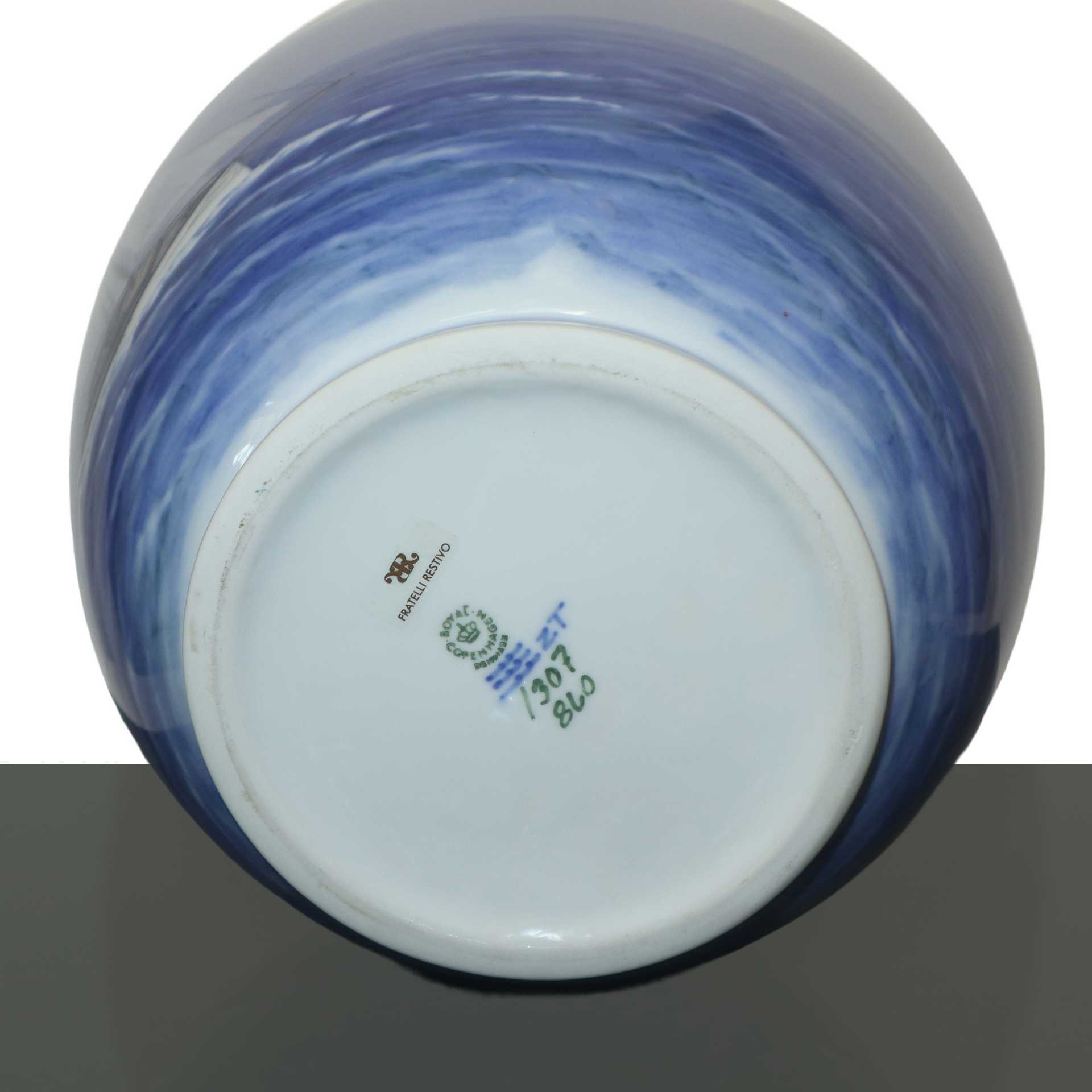 Royal Copenhagen Denmark - Grande vaso Copenaghen sferico marina con vela cm 31X27 Timbro sotto la base del vaso.Timbro sotto la base del vaso.