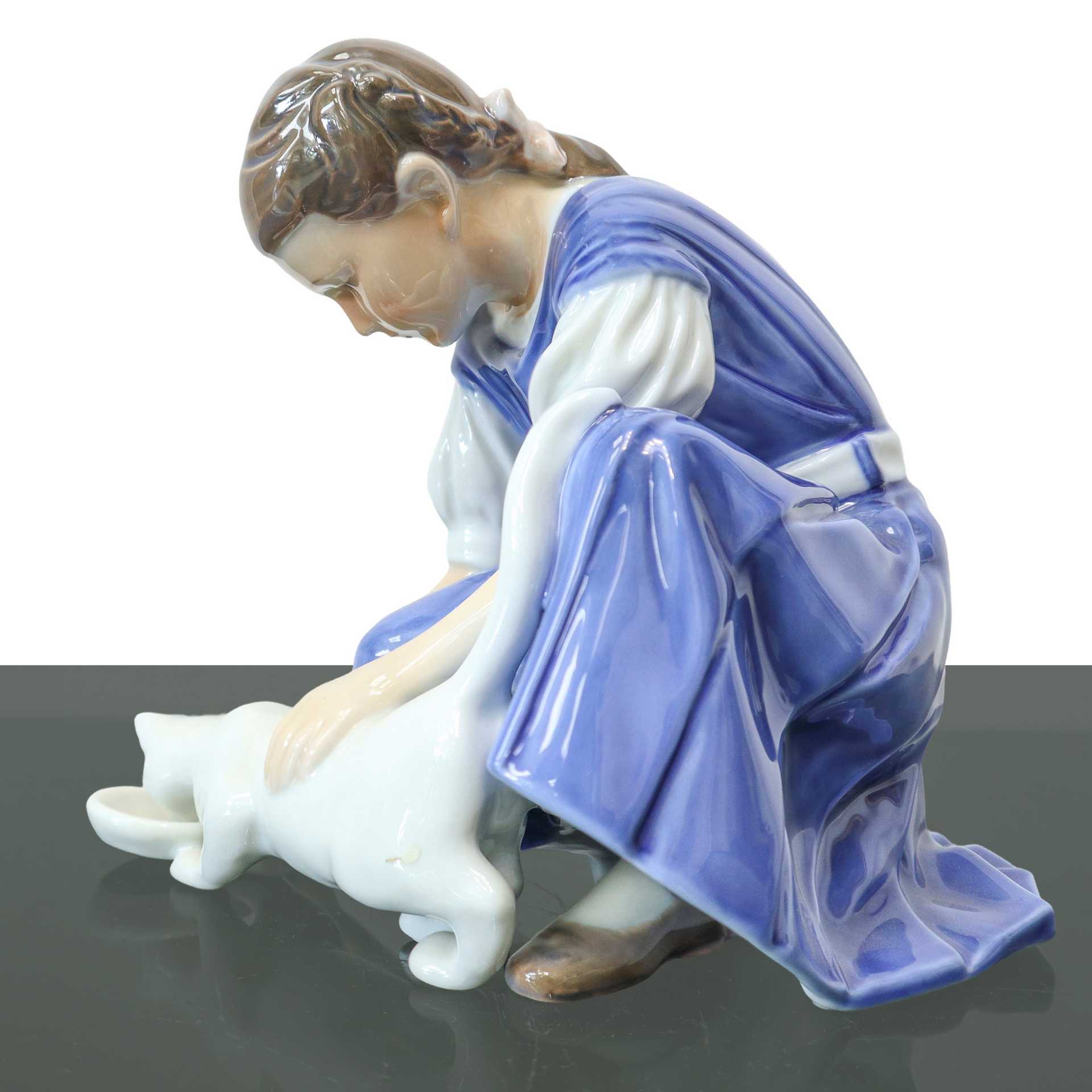 Royal Copenhagen Denmark - Ragazza con gattino H cm 13,5x16 421. Marchio alla base.421. Marchio alla base.
