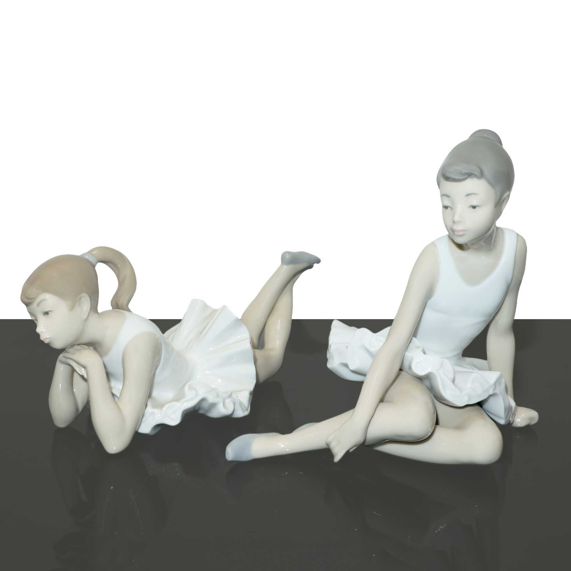 Nao Valencia - Due ballerine in porcellana H cm 16.5x17.5 - H cm 10x21.5 Marchio alla base.Marchio alla base.