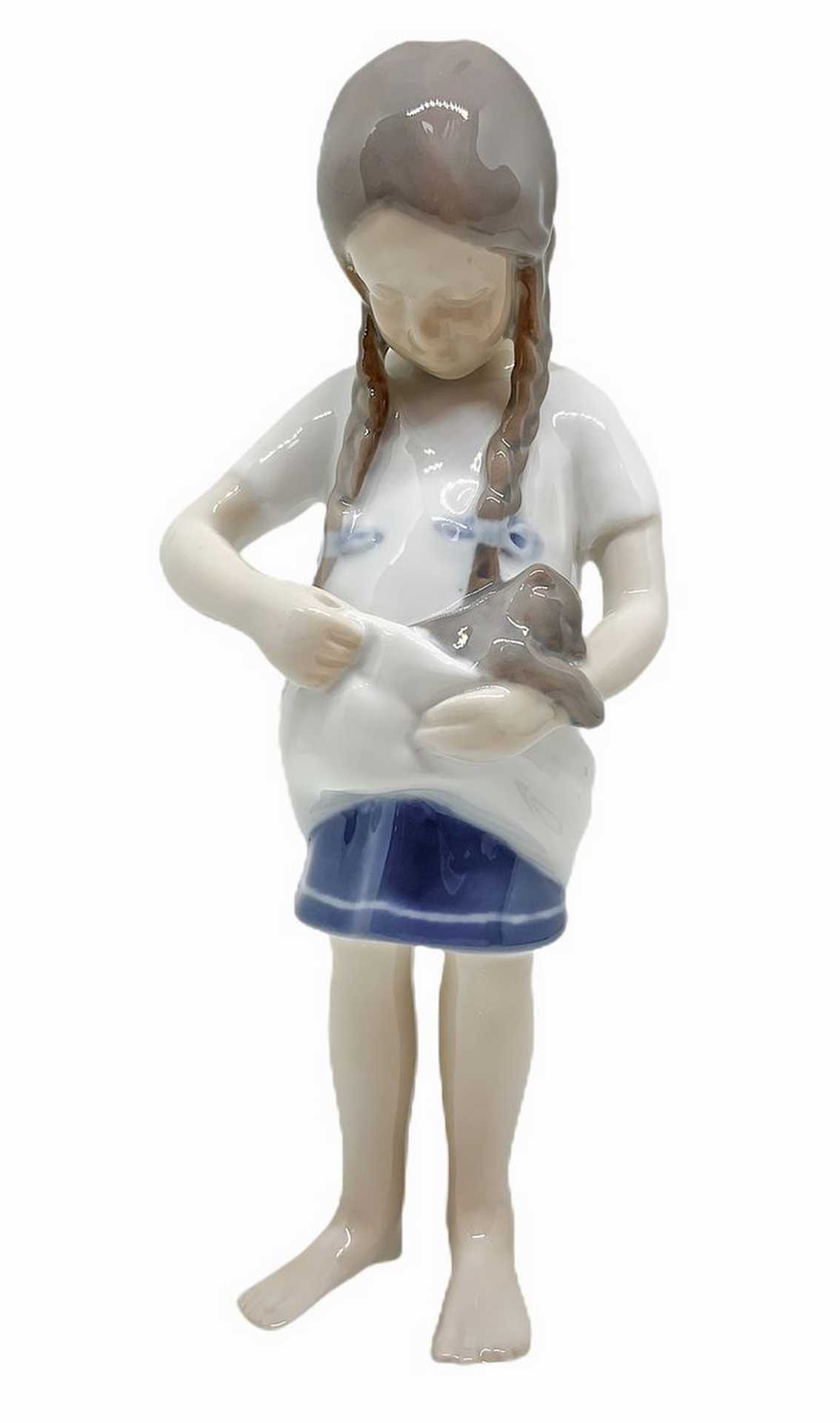 Copenaghen - Statuetta in porcellana raffigurante bambina con gattino