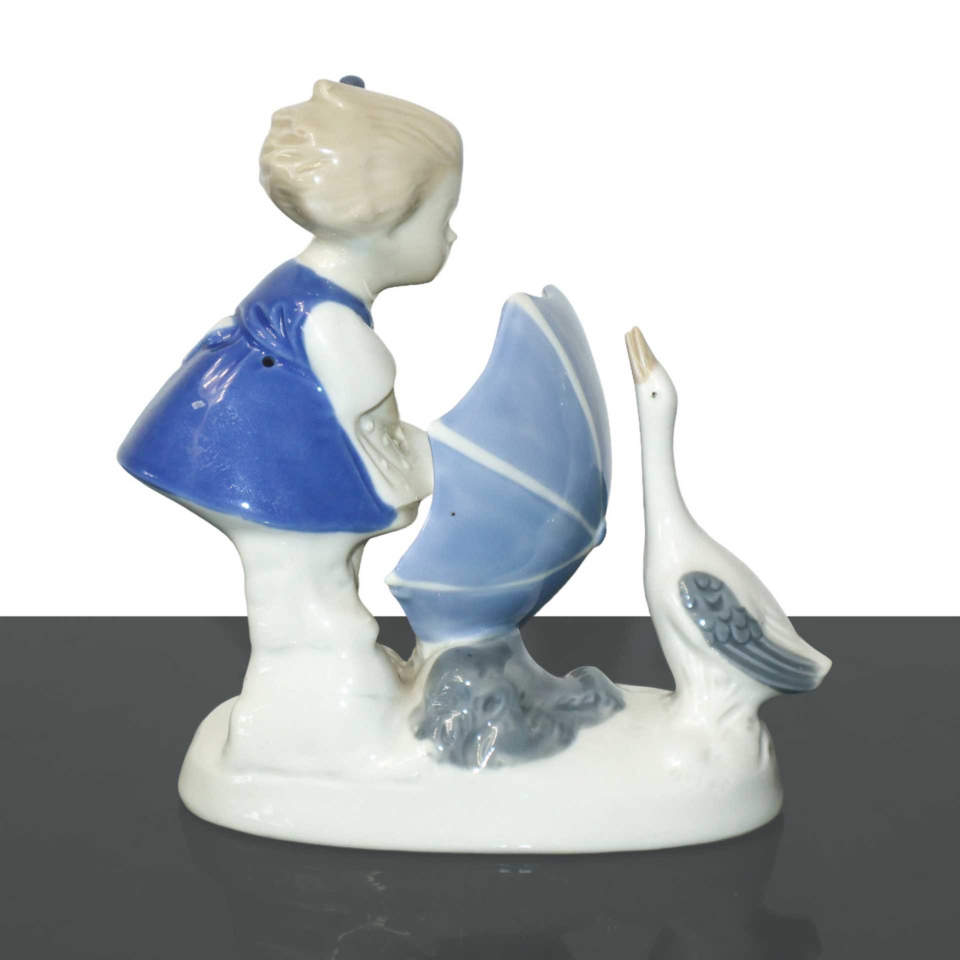 Royal Copenhagen - Bambina con ombrello e oca cm 14 Marchio sul fondoMarchio sul fondo