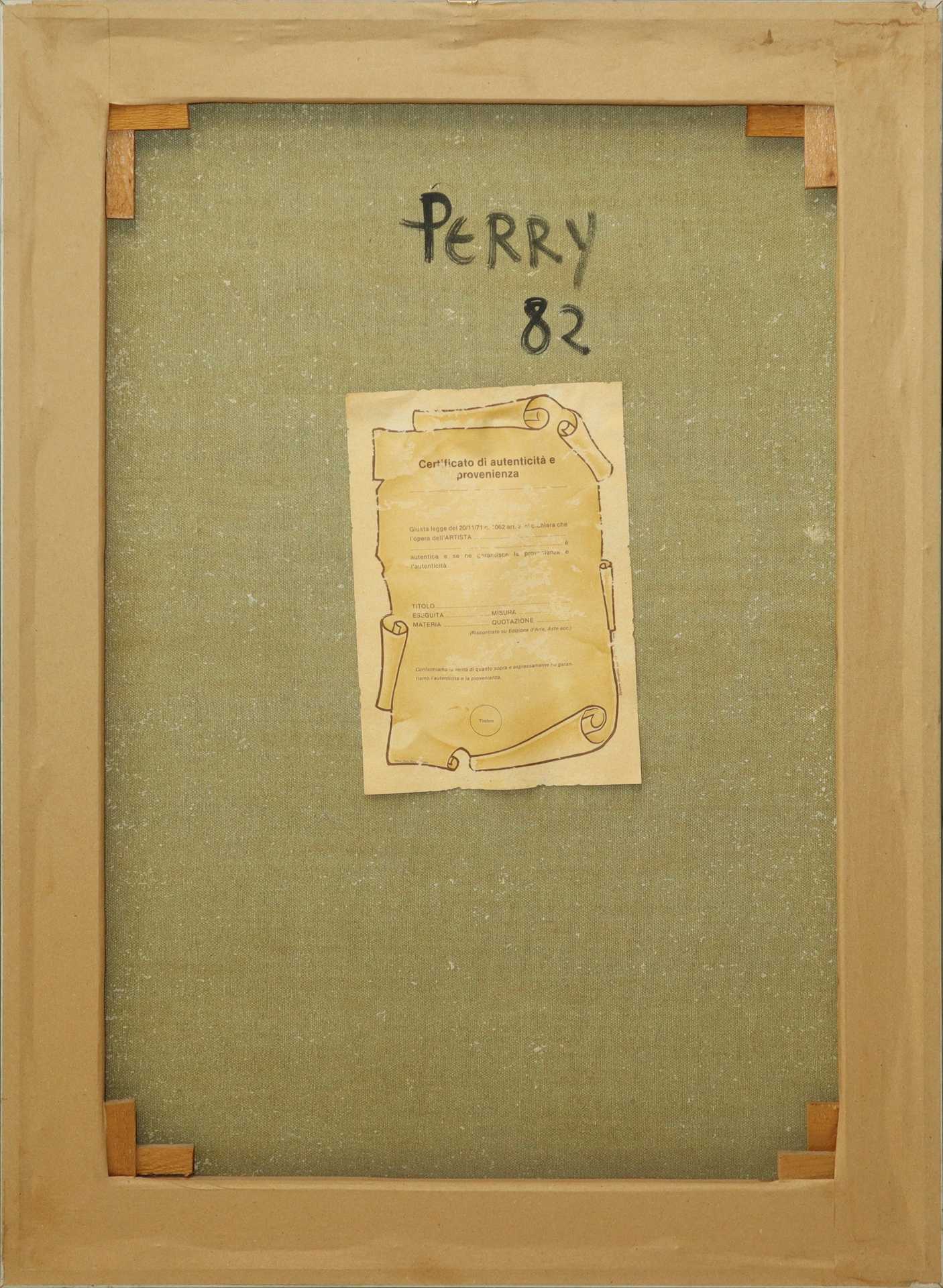 Marina con barche e case, 1982 H cm 73x53 Firmata Perry in basso a destra. Al retro firmato e datato 82.Firmata Perry in basso a destra. Al retro firmato e datato 82.