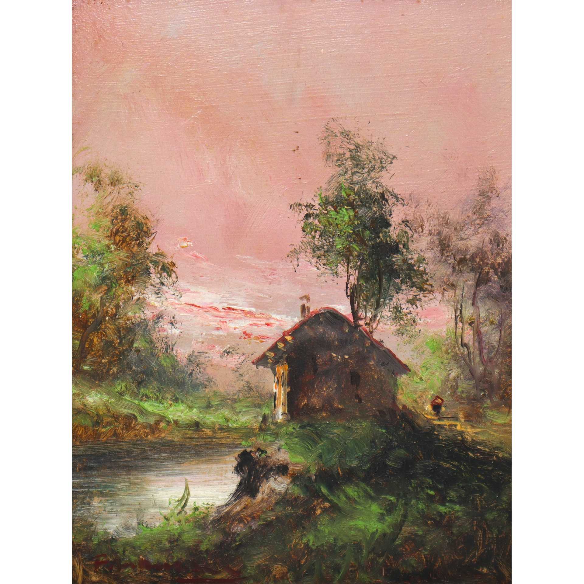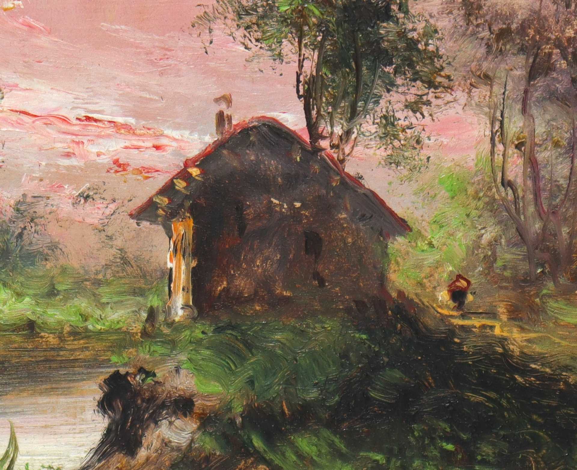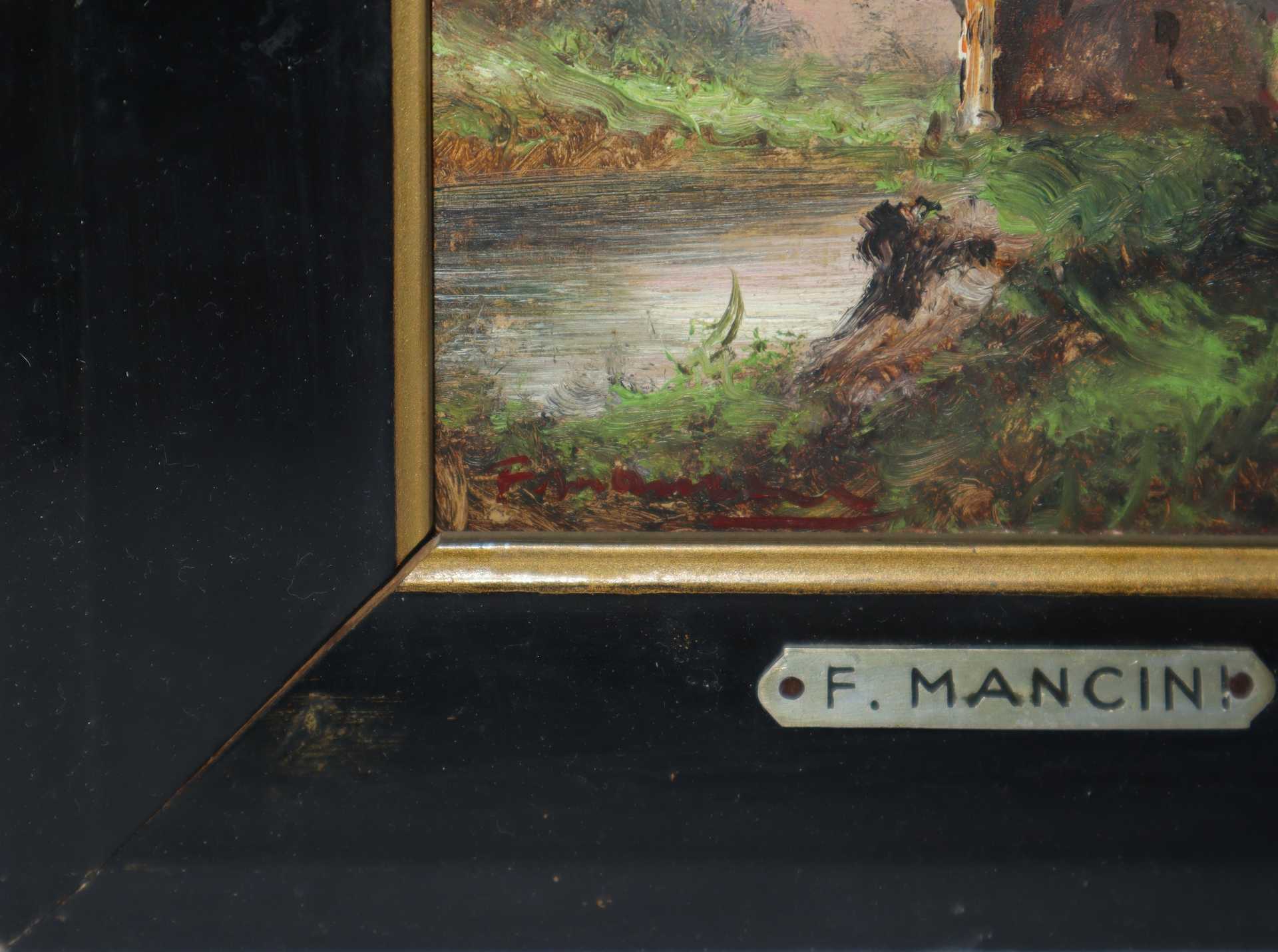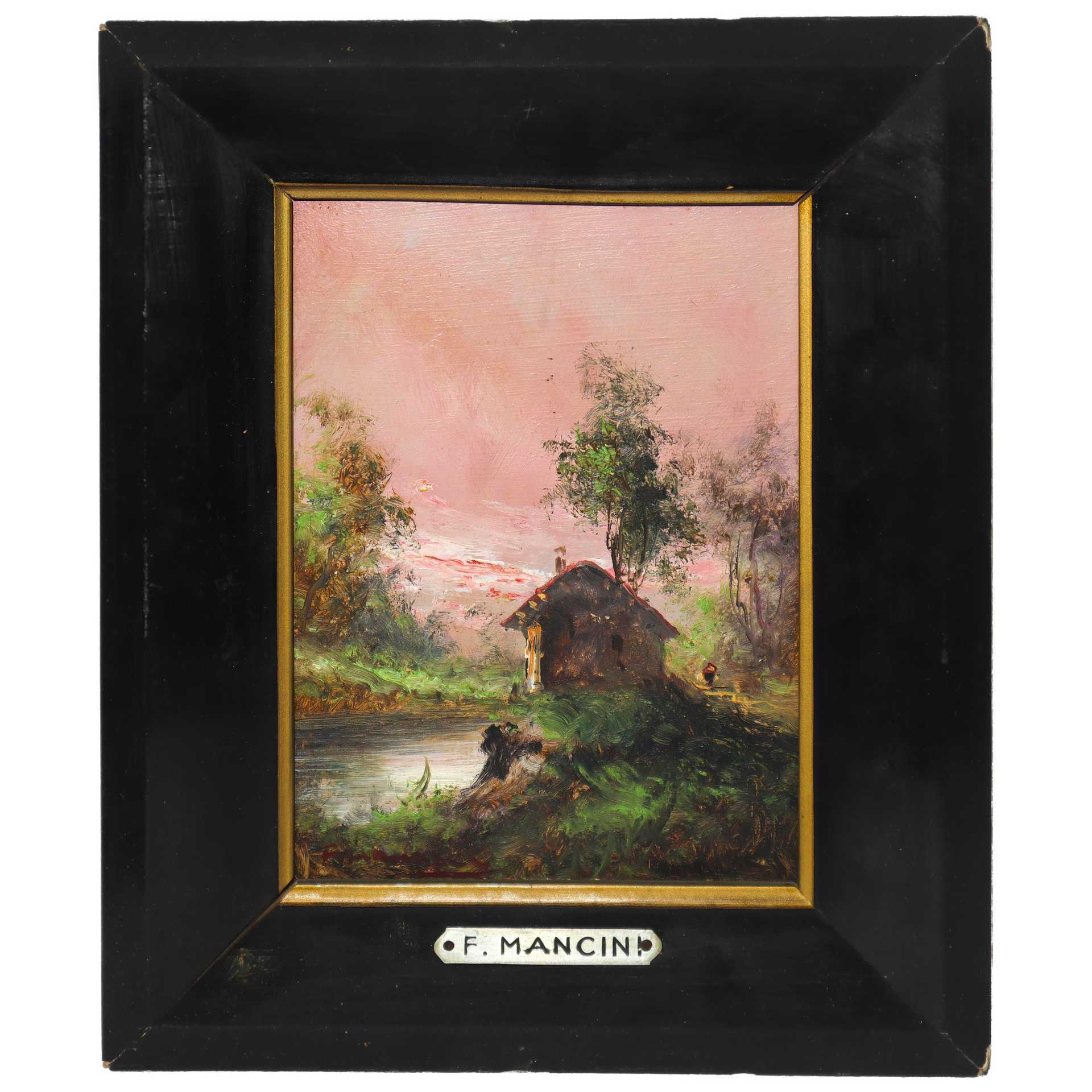 Francesco Mancini Lord (Napoli 19/01/1830-Napoli 1905) - Paesaggio lagunare con casa, nineteen° secolo H cm 18x13 - in cornice H cm 25,5x21 Olio su tavoletta Firmato in basso a sinistra