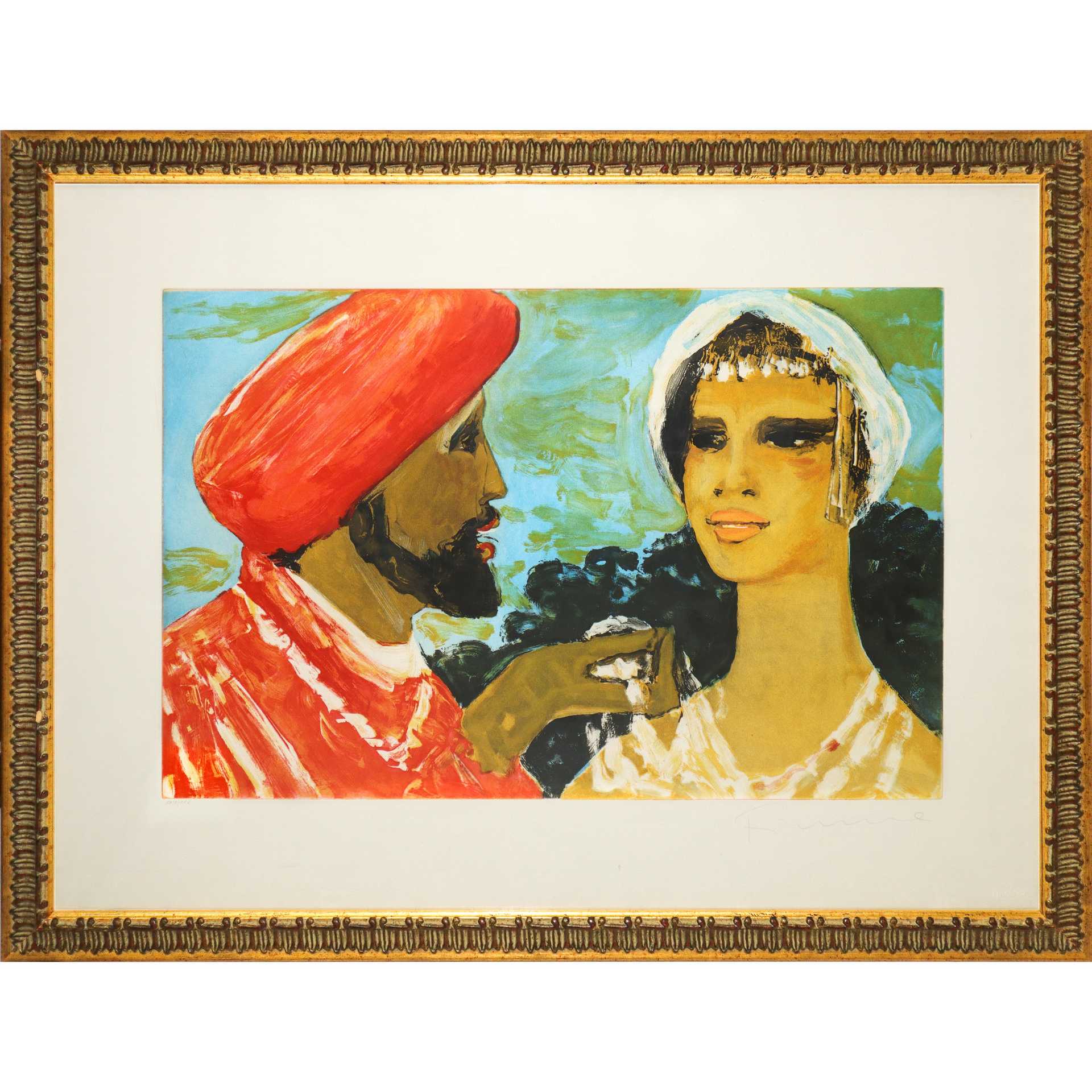 Salvatore Fiume (Comiso 1915-Milano 1997) - Somala e Sultano H cm 59x80 - in cornice H cm 67,5x87,5 Acquaforte XXIV/XXV, al fronte in basso a sinistra. Firmata al fronte in basso a destra. Al retro Certificato di Autenticita' e Provenienza Galleria d'Arte Mediterranea, Trapani.