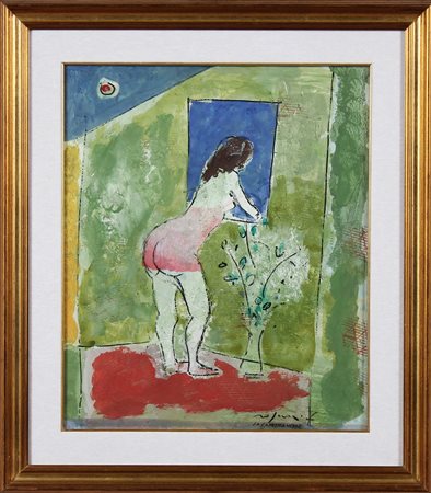 ROGNONI FRANCO (1913 - 1999) La camera verde. Tecnica mista su tela. Cm 45,00...