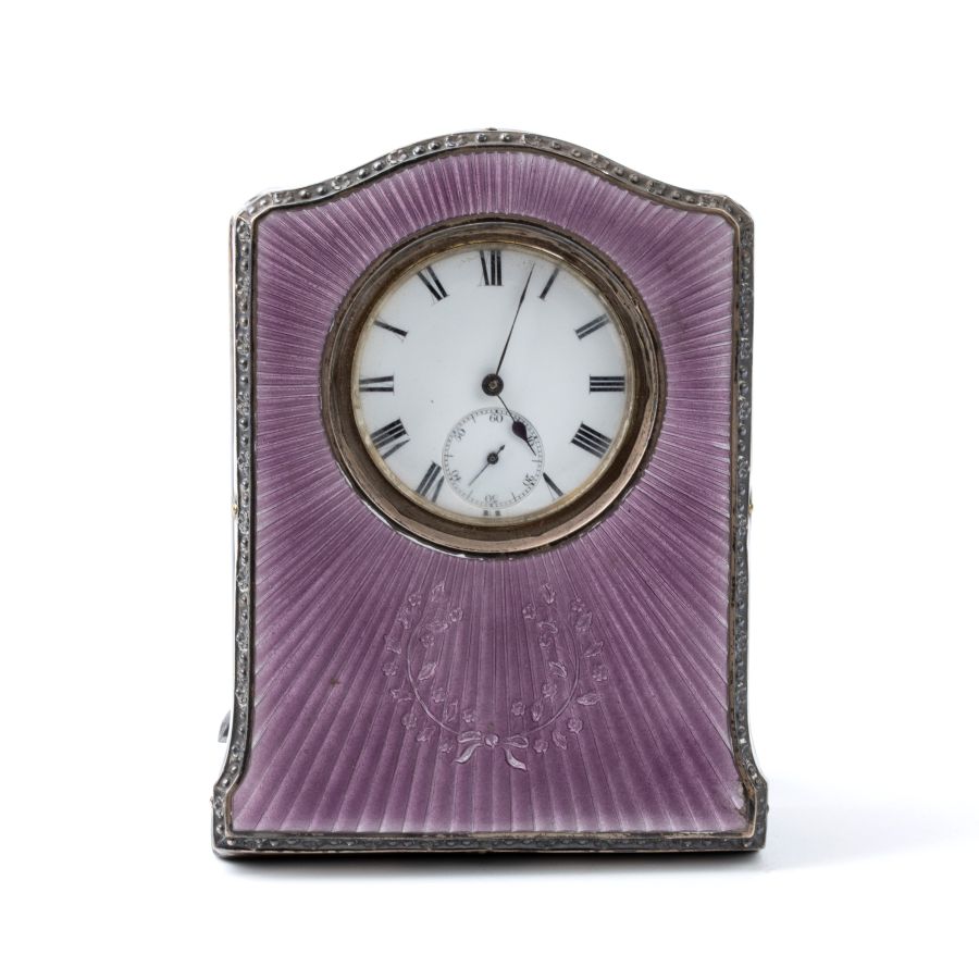 Charles S Green & Co Ltd: Orologio da tavolo Art Déco in argento e smalti. Birmingham, 1911