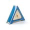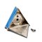 Cassa di forma triangolare in argento 935/1000 e smalti guilloché nei toni dell'azzurro, quadrante bianco e dorato con numeri arabi dorati e sfere nere. Rimessa delle ore e carica a chiave.