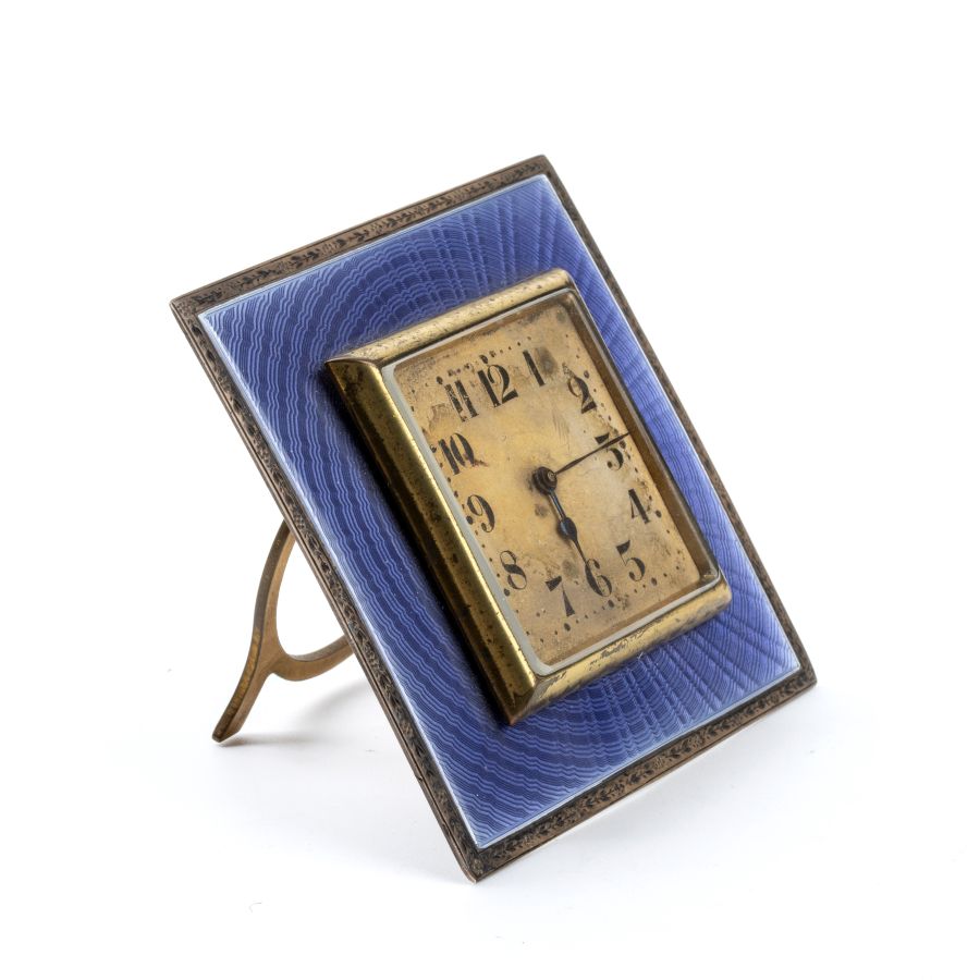 Walker & Hall: Orologio da tavolo Art Déco in argento e smalti. Birmingham, 1923