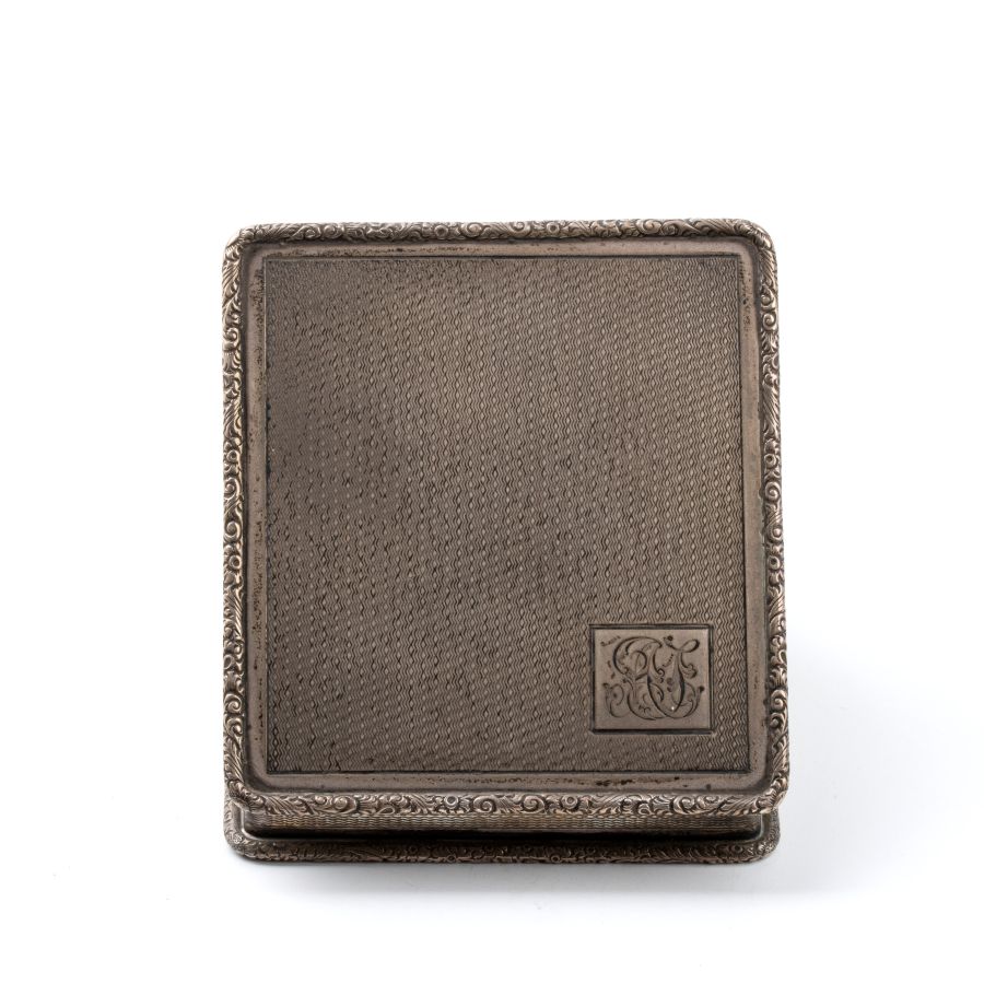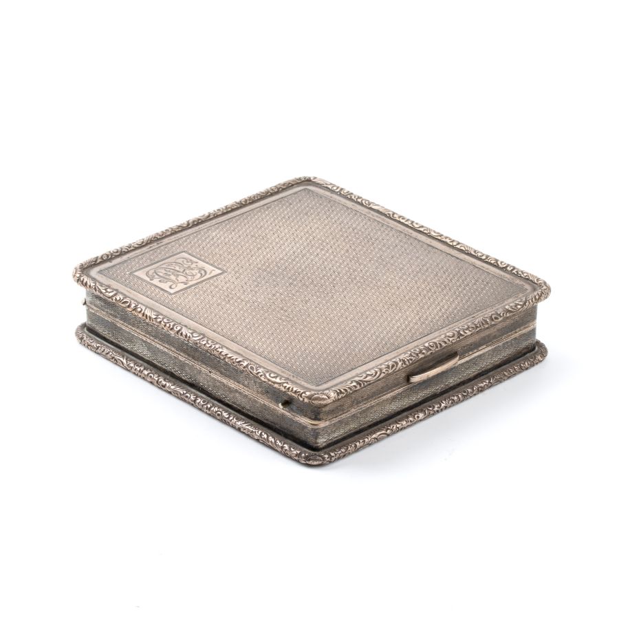 Cassa in argento 925/1000 punzonato all'interno con la serie completa di marchi Birmingham 1927-1928, argentiere William Base & Sons.