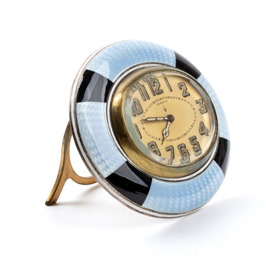 Esperia: Orologio da tavolo Art Déco in metallo e smalti. Anni '20 - '30